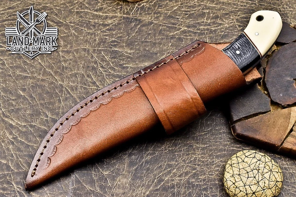 Custom Hand Made D2 STEEL HUNTING KNIFE WITH BEAUTIFUL HANDLE We offer a shipping discount for More then one purchased . And discount will be apply on combine invoice, Discount will not apply on separate payment. ITEM DETAILS OVER ALL LENGTH 8.0 inches long (Approx) HANDLE LENGTH 4.0 inches long (Approx) BLADE LENGTH 4.0 inches long (Approx) BLADE HARDNESS 58-60 HRC Which Holds The Sharp Edge For Long Time. HANDLE WOOD AND BONE COVER LEATHER SHEATH This Awesome custom made KNIFE has a nice hand forged with the combination of 4340 & 1080 steel. HOW OUR DAMASCUS IS MADE: All our Damascus is real and not just an acid etch. Damascus is a mixture of 1080HC and 4340 nickel carbon. You heat them up together and then fold the bar over and over to get the desired layers, ours are 396 layers. Then you burn the blade in acid, and it turns the nickel satin color and the high carbon turns blackish gray. This is how the layers are exposed to show the layers of the new steel created coined "Damascus". All Damascus is acid etched to show the layers. If you high polish the metal it will be shinny satin like all steels. Only after you burn the sides of the blade with acid do you see the layers of the two steels. Makes sense? After we make our knives we high polish the handles and put an edge on the blade. The high polishing buffs off the acid burned layer of the handle, and the blade edge is sharpened and the acid burned edge becomes satin. You can re-burn the tang of the blade near the handles and the edge of the blade and it will show the layers once more. All our knives are hand made, durable and unique ***** YOU WILL RECEIVED THE SAME KNIFE Qality Standards Our Damascus blades are made from high quality non-stainless steels which rival or exceed any Damascus blade made from the 10 series with 4340. Our Damascus combination has taken years to perfect and has been tested under a variety of application which will offer professional performance in categories of toughness, strength (lateral stress) and edge honing and holding ability. In a 5 spot Rockwell test our blades will average near or close to 58 which offers a perfect balances between its toughness and strength.Our blades due to carbon content need to be regularly treated with wax and/or 3 in 1 oil to maintain its superior quality. Questions if you have any question feel free to send us message we aim to answer all questions within 24 hours Feedback If you are not satisfied with our service please contact us before leaving any negative or natural feedback. We will resolve all issues as quickly as possible. Disclaimer We are not responsible for any injuries associated with the use of our tools. Our products are intended for legal use only by responsible buyers. Therefore, we will not sell our products to anyone under the age of 18. Before bidding please check your country laws as some countries Custom don't allow this. If your purchase is held by Custom Authorities in your country/State we will not be responsible for that and no refund will be issued Shipping We offer a 20% shipping discount for More then one purchased . And discount will be apply on combine invoice, Discount will not apply on separate payment We ship within 24 hours after receiving complete payment but this can be delayed due to week ends or Governments and Religious Festivals . . This is beyond our control and we apologize for this inconvenience. Precautions Our Tools are very sharp so open and use them very carefully We are not responsible for any injuries associated with the use of our tools Tips to Care knife 1. NEVER STORE YOUR KNIFE FOR LONG TIME IN LEATHER SHEATH. 2. LEATHER CAN ABSORB WATER, WHICH WILL RUST THE KNIFE. 3. ALWAYS CLEAN THE BLADE AFTER USING WITH OIL OR WAX