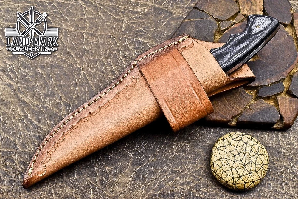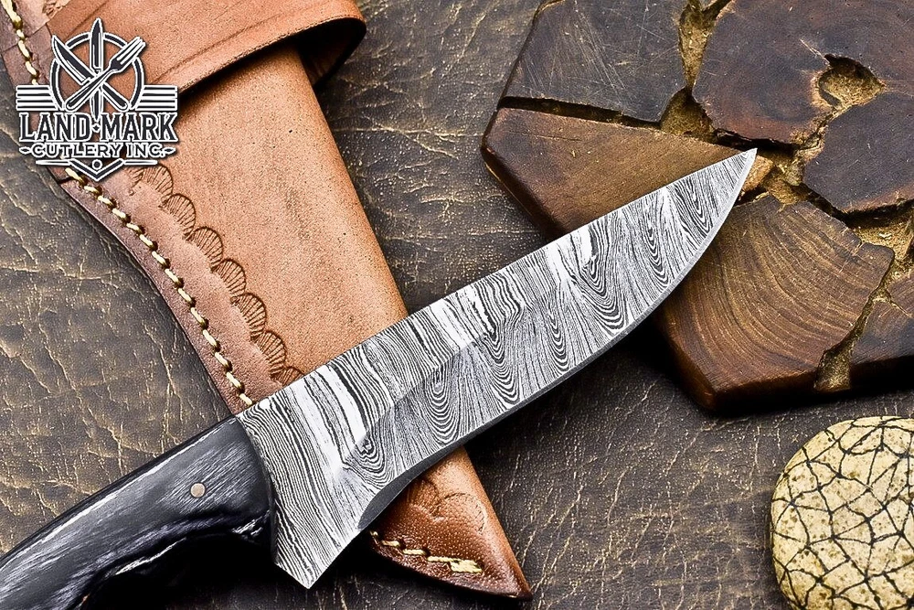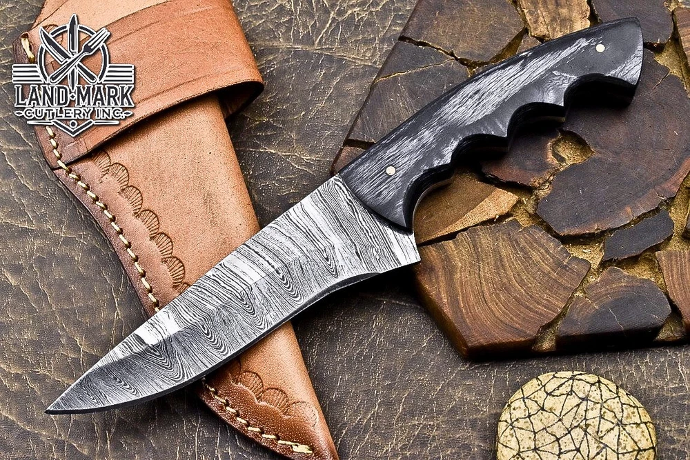 Custom Hand Made DAMASCUS STEEL HUNTING KNIFE WITH BLACK HANDLE We offer a shipping discount for More then one purchased . And discount will be apply on combine invoice, Discount will not apply on separate payment. ITEM DETAILS OVER ALL LENGTH 8.0 inches long (Approx) HANDLE LENGTH 4.0 inches long (Approx) BLADE LENGTH 4.0 inches long (Approx) BLADE HARDNESS 58-60 HRC Which Holds The Sharp Edge For Long Time. HANDLE BLACK HANDLE COVER LEATHER SHEATH This Awesome custom made KNIFE has a nice hand forged with the combination of 4340 & 1080 steel. HOW OUR DAMASCUS IS MADE: All our Damascus is real and not just an acid etch. Damascus is a mixture of 1080HC and 4340 nickel carbon. You heat them up together and then fold the bar over and over to get the desired layers, ours are 396 layers. Then you burn the blade in acid, and it turns the nickel satin color and the high carbon turns blackish gray. This is how the layers are exposed to show the layers of the new steel created coined "Damascus". All Damascus is acid etched to show the layers. If you high polish the metal it will be shinny satin like all steels. Only after you burn the sides of the blade with acid do you see the layers of the two steels. Makes sense? After we make our knives we high polish the handles and put an edge on the blade. The high polishing buffs off the acid burned layer of the handle, and the blade edge is sharpened and the acid burned edge becomes satin. You can re-burn the tang of the blade near the handles and the edge of the blade and it will show the layers once more. All our knives are hand made, durable and unique ***** YOU WILL RECEIVED THE SAME KNIFE Qality Standards Our Damascus blades are made from high quality non-stainless steels which rival or exceed any Damascus blade made from the 10 series with 4340. Our Damascus combination has taken years to perfect and has been tested under a variety of application which will offer professional performance in categories of toughness, strength (lateral stress) and edge honing and holding ability. In a 5 spot Rockwell test our blades will average near or close to 58 which offers a perfect balances between its toughness and strength.Our blades due to carbon content need to be regularly treated with wax and/or 3 in 1 oil to maintain its superior quality. Questions if you have any question feel free to send us message we aim to answer all questions within 24 hours Feedback If you are not satisfied with our service please contact us before leaving any negative or natural feedback. We will resolve all issues as quickly as possible. Disclaimer We are not responsible for any injuries associated with the use of our tools. Our products are intended for legal use only by responsible buyers. Therefore, we will not sell our products to anyone under the age of 18. Before bidding please check your country laws as some countries Custom don't allow this. If your purchase is held by Custom Authorities in your country/State we will not be responsible for that and no refund will be issued Shipping We offer a 20% shipping discount for More then one purchased . And discount will be apply on combine invoice, Discount will not apply on separate payment We ship within 24 hours after receiving complete payment but this can be delayed due to week ends or Governments and Religious Festivals . . This is beyond our control and we apologize for this inconvenience. Precautions Our Tools are very sharp so open and use them very carefully We are not responsible for any injuries associated with the use of our tools Tips to Care knife 1. NEVER STORE YOUR KNIFE FOR LONG TIME IN LEATHER SHEATH. 2. LEATHER CAN ABSORB WATER, WHICH WILL RUST THE KNIFE. 3. ALWAYS CLEAN THE BLADE AFTER USING WITH OIL OR WAX