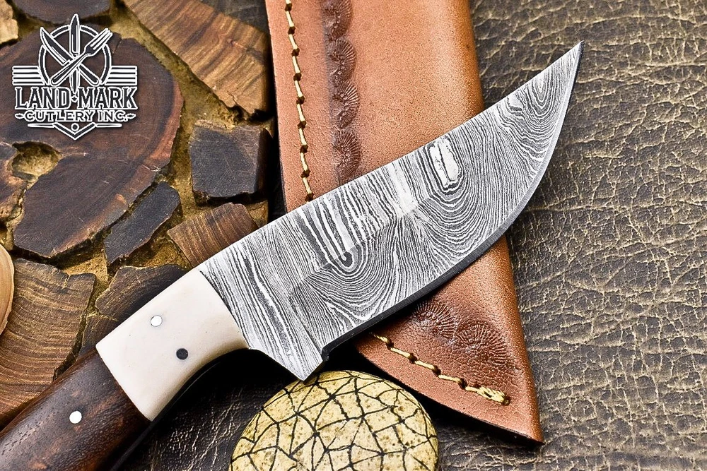 Custom Hand Made DAMASCUS STEEL HUNTING KNIFE WITH WOOD & SHEET HANDLE We offer a shipping discount for More then one purchased . And discount will be apply on combine invoice, Discount will not apply on separate payment. ITEM DETAILS OVER ALL LENGTH 8.0 inches long (Approx) HANDLE LENGTH 4.0 inches long (Approx) BLADE LENGTH 4.0 inches long (Approx) BLADE HARDNESS 58-60 HRC Which Holds The Sharp Edge For Long Time. HANDLE WOOD & SHEET COVER LEATHER SHEATH This Awesome custom made KNIFE has a nice hand forged with the combination of 4340 & 1080 steel. HOW OUR DAMASCUS IS MADE: All our Damascus is real and not just an acid etch. Damascus is a mixture of 1080HC and 4340 nickel carbon. You heat them up together and then fold the bar over and over to get the desired layers, ours are 396 layers. Then you burn the blade in acid, and it turns the nickel satin color and the high carbon turns blackish gray. This is how the layers are exposed to show the layers of the new steel created coined "Damascus". All Damascus is acid etched to show the layers. If you high polish the metal it will be shinny satin like all steels. Only after you burn the sides of the blade with acid do you see the layers of the two steels. Makes sense? After we make our knives we high polish the handles and put an edge on the blade. The high polishing buffs off the acid burned layer of the handle, and the blade edge is sharpened and the acid burned edge becomes satin. You can re-burn the tang of the blade near the handles and the edge of the blade and it will show the layers once more. All our knives are hand made, durable and unique ***** YOU WILL RECEIVED THE SAME KNIFE Qality Standards Our Damascus blades are made from high quality non-stainless steels which rival or exceed any Damascus blade made from the 10 series with 4340. Our Damascus combination has taken years to perfect and has been tested under a variety of application which will offer professional performance in categories of toughness, strength (lateral stress) and edge honing and holding ability. In a 5 spot Rockwell test our blades will average near or close to 58 which offers a perfect balances between its toughness and strength.Our blades due to carbon content need to be regularly treated with wax and/or 3 in 1 oil to maintain its superior quality. Questions if you have any question feel free to send us message we aim to answer all questions within 24 hours Feedback If you are not satisfied with our service please contact us before leaving any negative or natural feedback. We will resolve all issues as quickly as possible. Disclaimer We are not responsible for any injuries associated with the use of our tools. Our products are intended for legal use only by responsible buyers. Therefore, we will not sell our products to anyone under the age of 18. Before bidding please check your country laws as some countries Custom don't allow this. If your purchase is held by Custom Authorities in your country/State we will not be responsible for that and no refund will be issued Shipping We offer a 20% shipping discount for More then one purchased . And discount will be apply on combine invoice, Discount will not apply on separate payment We ship within 24 hours after receiving complete payment but this can be delayed due to week ends or Governments and Religious Festivals . . This is beyond our control and we apologize for this inconvenience. Precautions Our Tools are very sharp so open and use them very carefully We are not responsible for any injuries associated with the use of our tools Tips to Care knife 1. NEVER STORE YOUR KNIFE FOR LONG TIME IN LEATHER SHEATH. 2. LEATHER CAN ABSORB WATER, WHICH WILL RUST THE KNIFE. 3. ALWAYS CLEAN THE BLADE AFTER USING WITH OIL OR WAX