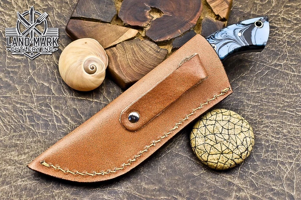 Custom Hand Made DAMASCUS STEEL HUNTING KNIFE WITH RESIN HANDLE We offer a shipping discount for More then one purchased . And discount will be apply on combine invoice, Discount will not apply on separate payment. ITEM DETAILS OVER ALL LENGTH 8.0 inches long (Approx) HANDLE LENGTH 4.0 inches long (Approx) BLADE LENGTH 4.0 inches long (Approx) BLADE HARDNESS 58-60 HRC Which Holds The Sharp Edge For Long Time. HANDLE RESIN COVER LEATHER SHEATH This Awesome custom made KNIFE has a nice hand forged with the combination of 4340 & 1080 steel. HOW OUR DAMASCUS IS MADE: All our Damascus is real and not just an acid etch. Damascus is a mixture of 1080HC and 4340 nickel carbon. You heat them up together and then fold the bar over and over to get the desired layers, ours are 396 layers. Then you burn the blade in acid, and it turns the nickel satin color and the high carbon turns blackish gray. This is how the layers are exposed to show the layers of the new steel created coined "Damascus". All Damascus is acid etched to show the layers. If you high polish the metal it will be shinny satin like all steels. Only after you burn the sides of the blade with acid do you see the layers of the two steels. Makes sense? After we make our knives we high polish the handles and put an edge on the blade. The high polishing buffs off the acid burned layer of the handle, and the blade edge is sharpened and the acid burned edge becomes satin. You can re-burn the tang of the blade near the handles and the edge of the blade and it will show the layers once more. All our knives are hand made, durable and unique ***** YOU WILL RECEIVED THE SAME KNIFE Qality Standards Our Damascus blades are made from high quality non-stainless steels which rival or exceed any Damascus blade made from the 10 series with 4340. Our Damascus combination has taken years to perfect and has been tested under a variety of application which will offer professional performance in categories of toughness, strength (lateral stress) and edge honing and holding ability. In a 5 spot Rockwell test our blades will average near or close to 58 which offers a perfect balances between its toughness and strength.Our blades due to carbon content need to be regularly treated with wax and/or 3 in 1 oil to maintain its superior quality. Questions if you have any question feel free to send us message we aim to answer all questions within 24 hours Feedback If you are not satisfied with our service please contact us before leaving any negative or natural feedback. We will resolve all issues as quickly as possible. Disclaimer We are not responsible for any injuries associated with the use of our tools. Our products are intended for legal use only by responsible buyers. Therefore, we will not sell our products to anyone under the age of 18. Before bidding please check your country laws as some countries Custom don't allow this. If your purchase is held by Custom Authorities in your country/State we will not be responsible for that and no refund will be issued Shipping We offer a 20% shipping discount for More then one purchased . And discount will be apply on combine invoice, Discount will not apply on separate payment We ship within 24 hours after receiving complete payment but this can be delayed due to week ends or Governments and Religious Festivals . . This is beyond our control and we apologize for this inconvenience. Precautions Our Tools are very sharp so open and use them very carefully We are not responsible for any injuries associated with the use of our tools Tips to Care knife 1. NEVER STORE YOUR KNIFE FOR LONG TIME IN LEATHER SHEATH. 2. LEATHER CAN ABSORB WATER, WHICH WILL RUST THE KNIFE. 3. ALWAYS CLEAN THE BLADE AFTER USING WITH OIL OR WAX