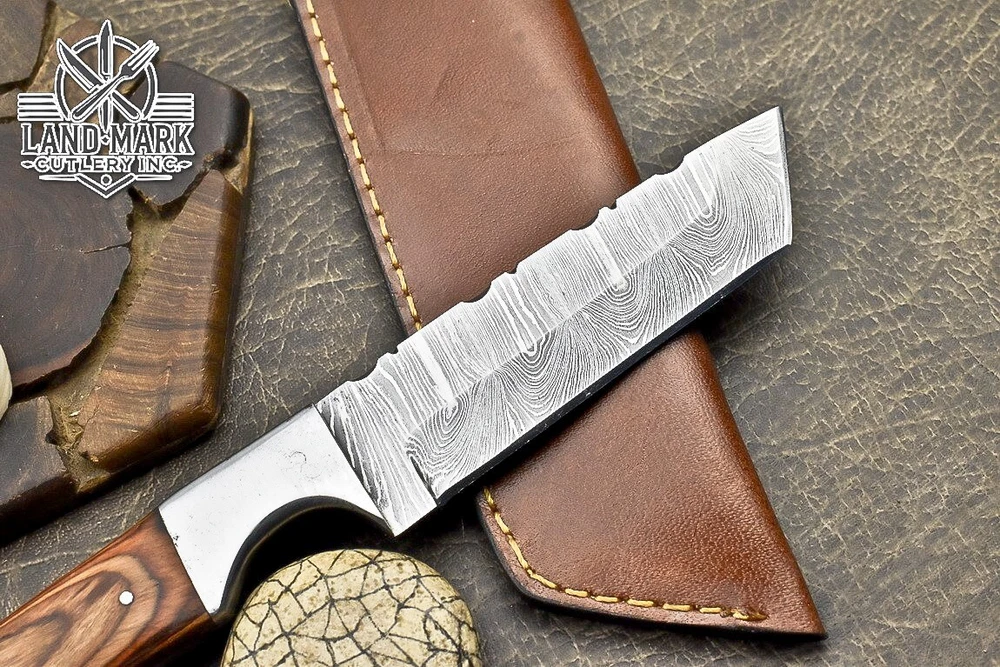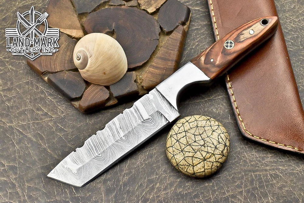 Custom Hand Made D2 STEEL HUNTING KNIFE WITH PAKKA WOOD HANDLE We offer a shipping discount for More then one purchased . And discount will be apply on combine invoice, Discount will not apply on separate payment. ITEM DETAILS OVER ALL LENGTH 8.0 inches long (Approx) HANDLE LENGTH 4.0 inches long (Approx) BLADE LENGTH 4.0 inches long (Approx) BLADE HARDNESS 58-60 HRC Which Holds The Sharp Edge For Long Time. HANDLE PAKKA WOOD COVER LEATHER SHEATH This Awesome custom made KNIFE has a nice hand forged with the combination of 4340 & 1080 steel. HOW OUR DAMASCUS IS MADE: All our Damascus is real and not just an acid etch. Damascus is a mixture of 1080HC and 4340 nickel carbon. You heat them up together and then fold the bar over and over to get the desired layers, ours are 396 layers. Then you burn the blade in acid, and it turns the nickel satin color and the high carbon turns blackish gray. This is how the layers are exposed to show the layers of the new steel created coined "Damascus". All Damascus is acid etched to show the layers. If you high polish the metal it will be shinny satin like all steels. Only after you burn the sides of the blade with acid do you see the layers of the two steels. Makes sense? After we make our knives we high polish the handles and put an edge on the blade. The high polishing buffs off the acid burned layer of the handle, and the blade edge is sharpened and the acid burned edge becomes satin. You can re-burn the tang of the blade near the handles and the edge of the blade and it will show the layers once more. All our knives are hand made, durable and unique ***** YOU WILL RECEIVED THE SAME KNIFE Qality Standards Our Damascus blades are made from high quality non-stainless steels which rival or exceed any Damascus blade made from the 10 series with 4340. Our Damascus combination has taken years to perfect and has been tested under a variety of application which will offer professional performance in categories of toughness, strength (lateral stress) and edge honing and holding ability. In a 5 spot Rockwell test our blades will average near or close to 58 which offers a perfect balances between its toughness and strength.Our blades due to carbon content need to be regularly treated with wax and/or 3 in 1 oil to maintain its superior quality. Questions if you have any question feel free to send us message we aim to answer all questions within 24 hours Feedback If you are not satisfied with our service please contact us before leaving any negative or natural feedback. We will resolve all issues as quickly as possible. Disclaimer We are not responsible for any injuries associated with the use of our tools. Our products are intended for legal use only by responsible buyers. Therefore, we will not sell our products to anyone under the age of 18. Before bidding please check your country laws as some countries Custom don't allow this. If your purchase is held by Custom Authorities in your country/State we will not be responsible for that and no refund will be issued Shipping We offer a 20% shipping discount for More then one purchased . And discount will be apply on combine invoice, Discount will not apply on separate payment We ship within 24 hours after receiving complete payment but this can be delayed due to week ends or Governments and Religious Festivals . . This is beyond our control and we apologize for this inconvenience. Precautions Our Tools are very sharp so open and use them very carefully We are not responsible for any injuries associated with the use of our tools Tips to Care knife 1. NEVER STORE YOUR KNIFE FOR LONG TIME IN LEATHER SHEATH. 2. LEATHER CAN ABSORB WATER, WHICH WILL RUST THE KNIFE. 3. ALWAYS CLEAN THE BLADE AFTER USING WITH OIL OR WAX