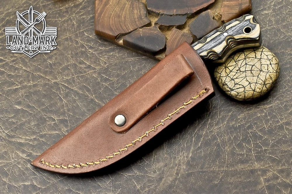 Custom Hand Made DAMASCUS STEEL HUNTING KNIFE WITH PAKKA WOOD HANDLE We offer a shipping discount for More then one purchased . And discount will be apply on combine invoice, Discount will not apply on separate payment. ITEM DETAILS OVER ALL LENGTH 8.0 inches long (Approx) HANDLE LENGTH 4.0 inches long (Approx) BLADE LENGTH 4.0 inches long (Approx) BLADE HARDNESS 58-60 HRC Which Holds The Sharp Edge For Long Time. HANDLE PAKKA WOOD COVER LEATHER SHEATH This Awesome custom made KNIFE has a nice hand forged with the combination of 4340 & 1080 steel. HOW OUR DAMASCUS IS MADE: All our Damascus is real and not just an acid etch. Damascus is a mixture of 1080HC and 4340 nickel carbon. You heat them up together and then fold the bar over and over to get the desired layers, ours are 396 layers. Then you burn the blade in acid, and it turns the nickel satin color and the high carbon turns blackish gray. This is how the layers are exposed to show the layers of the new steel created coined "Damascus". All Damascus is acid etched to show the layers. If you high polish the metal it will be shinny satin like all steels. Only after you burn the sides of the blade with acid do you see the layers of the two steels. Makes sense? After we make our knives we high polish the handles and put an edge on the blade. The high polishing buffs off the acid burned layer of the handle, and the blade edge is sharpened and the acid burned edge becomes satin. You can re-burn the tang of the blade near the handles and the edge of the blade and it will show the layers once more. All our knives are hand made, durable and unique ***** YOU WILL RECEIVED THE SAME KNIFE Qality Standards Our Damascus blades are made from high quality non-stainless steels which rival or exceed any Damascus blade made from the 10 series with 4340. Our Damascus combination has taken years to perfect and has been tested under a variety of application which will offer professional performance in categories of toughness, strength (lateral stress) and edge honing and holding ability. In a 5 spot Rockwell test our blades will average near or close to 58 which offers a perfect balances between its toughness and strength.Our blades due to carbon content need to be regularly treated with wax and/or 3 in 1 oil to maintain its superior quality. Questions if you have any question feel free to send us message we aim to answer all questions within 24 hours Feedback If you are not satisfied with our service please contact us before leaving any negative or natural feedback. We will resolve all issues as quickly as possible. Disclaimer We are not responsible for any injuries associated with the use of our tools. Our products are intended for legal use only by responsible buyers. Therefore, we will not sell our products to anyone under the age of 18. Before bidding please check your country laws as some countries Custom don't allow this. If your purchase is held by Custom Authorities in your country/State we will not be responsible for that and no refund will be issued Shipping We offer a 20% shipping discount for More then one purchased . And discount will be apply on combine invoice, Discount will not apply on separate payment We ship within 24 hours after receiving complete payment but this can be delayed due to week ends or Governments and Religious Festivals . . This is beyond our control and we apologize for this inconvenience. Precautions Our Tools are very sharp so open and use them very carefully We are not responsible for any injuries associated with the use of our tools Tips to Care knife 1. NEVER STORE YOUR KNIFE FOR LONG TIME IN LEATHER SHEATH. 2. LEATHER CAN ABSORB WATER, WHICH WILL RUST THE KNIFE. 3. ALWAYS CLEAN THE BLADE AFTER USING WITH OIL OR WAX