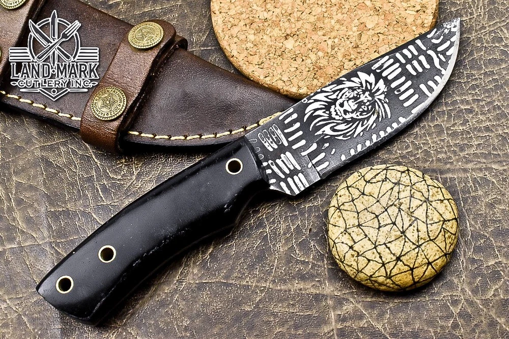 BEAUTIFUL CUSTOM MADE DAMASCUS HUNTING SKINNER KNIFE WITH WOOD BLACK HANDLE