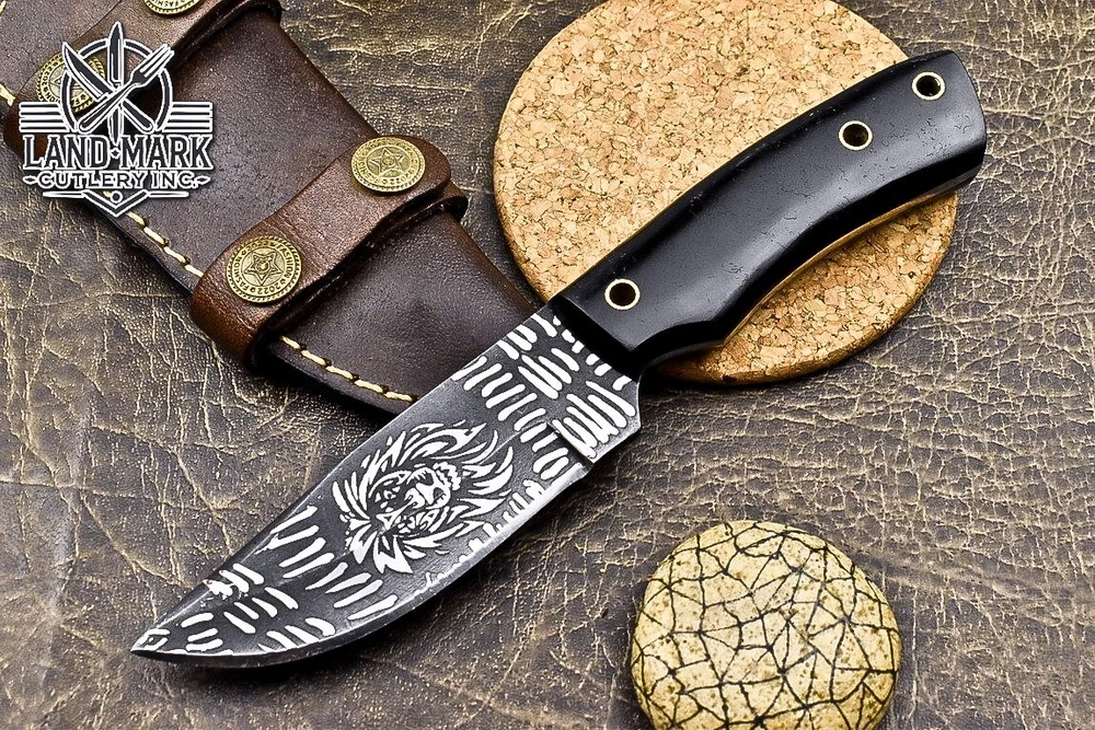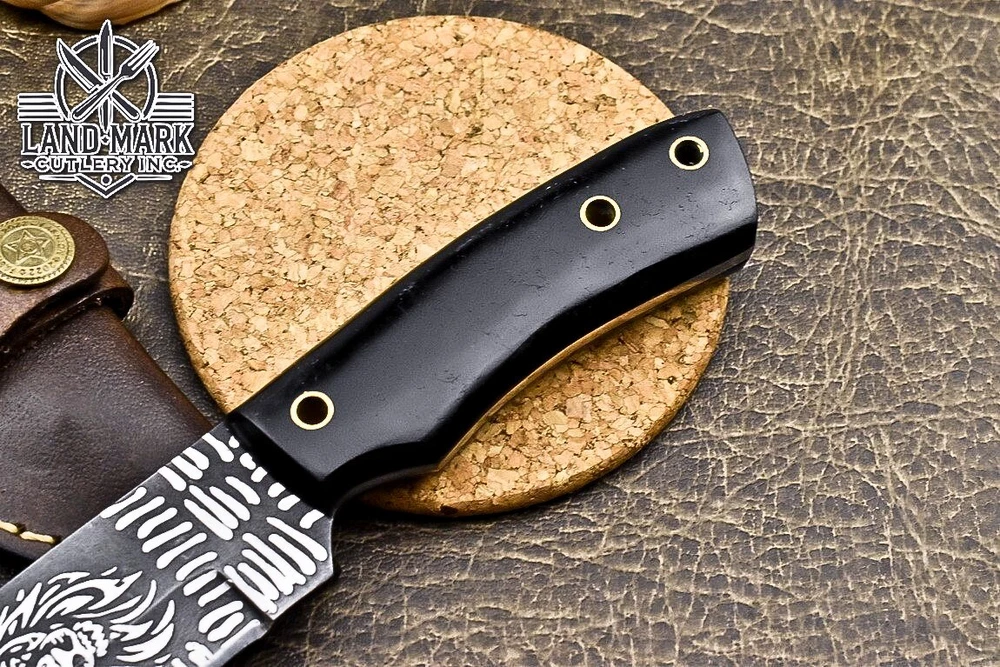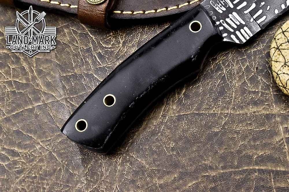 Custom Hand Made DAMASCUS STEEL HUNTING KNIFE WITH BLACK HANDLE We offer a shipping discount for More then one purchased . And discount will be apply on combine invoice, Discount will not apply on separate payment. ITEM DETAILS OVER ALL LENGTH 8.0 inches long (Approx) HANDLE LENGTH 4.0 inches long (Approx) BLADE LENGTH 4.0 inches long (Approx) BLADE HARDNESS 58-60 HRC Which Holds The Sharp Edge For Long Time. HANDLE BLACK COVER LEATHER SHEATH This Awesome custom made KNIFE has a nice hand forged with the combination of 4340 & 1080 steel. HOW OUR DAMASCUS IS MADE: All our Damascus is real and not just an acid etch. Damascus is a mixture of 1080HC and 4340 nickel carbon. You heat them up together and then fold the bar over and over to get the desired layers, ours are 396 layers. Then you burn the blade in acid, and it turns the nickel satin color and the high carbon turns blackish gray. This is how the layers are exposed to show the layers of the new steel created coined "Damascus". All Damascus is acid etched to show the layers. If you high polish the metal it will be shinny satin like all steels. Only after you burn the sides of the blade with acid do you see the layers of the two steels. Makes sense? After we make our knives we high polish the handles and put an edge on the blade. The high polishing buffs off the acid burned layer of the handle, and the blade edge is sharpened and the acid burned edge becomes satin. You can re-burn the tang of the blade near the handles and the edge of the blade and it will show the layers once more. All our knives are hand made, durable and unique ***** YOU WILL RECEIVED THE SAME KNIFE Qality Standards Our Damascus blades are made from high quality non-stainless steels which rival or exceed any Damascus blade made from the 10 series with 4340. Our Damascus combination has taken years to perfect and has been tested under a variety of application which will offer professional performance in categories of toughness, strength (lateral stress) and edge honing and holding ability. In a 5 spot Rockwell test our blades will average near or close to 58 which offers a perfect balances between its toughness and strength.Our blades due to carbon content need to be regularly treated with wax and/or 3 in 1 oil to maintain its superior quality. Questions if you have any question feel free to send us message we aim to answer all questions within 24 hours Feedback If you are not satisfied with our service please contact us before leaving any negative or natural feedback. We will resolve all issues as quickly as possible. Disclaimer We are not responsible for any injuries associated with the use of our tools. Our products are intended for legal use only by responsible buyers. Therefore, we will not sell our products to anyone under the age of 18. Before bidding please check your country laws as some countries Custom don't allow this. If your purchase is held by Custom Authorities in your country/State we will not be responsible for that and no refund will be issued Shipping We offer a 20% shipping discount for More then one purchased . And discount will be apply on combine invoice, Discount will not apply on separate payment We ship within 24 hours after receiving complete payment but this can be delayed due to week ends or Governments and Religious Festivals . . This is beyond our control and we apologize for this inconvenience. Precautions Our Tools are very sharp so open and use them very carefully We are not responsible for any injuries associated with the use of our tools Tips to Care knife 1. NEVER STORE YOUR KNIFE FOR LONG TIME IN LEATHER SHEATH. 2. LEATHER CAN ABSORB WATER, WHICH WILL RUST THE KNIFE. 3. ALWAYS CLEAN THE BLADE AFTER USING WITH OIL OR WAX