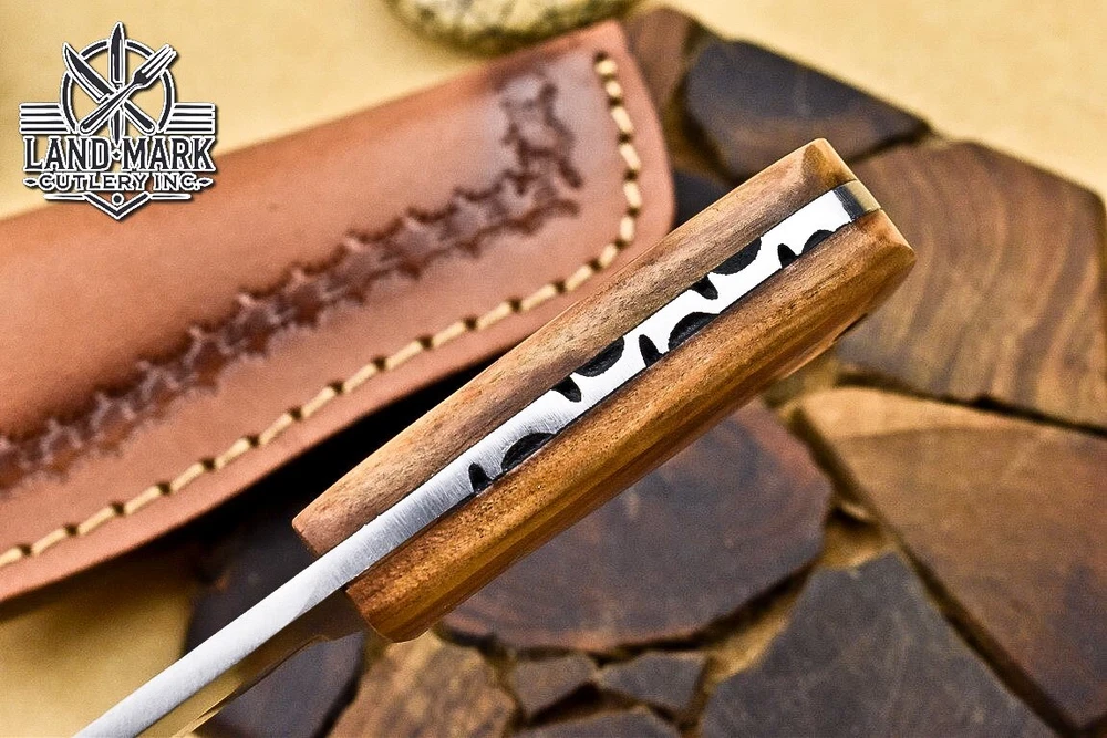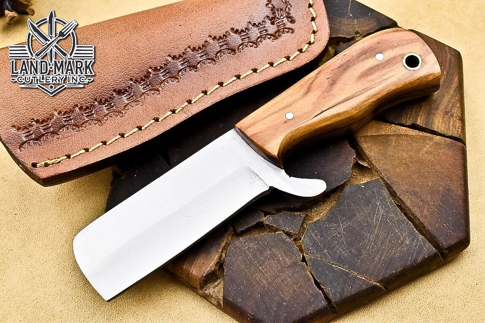 Custom Hand Made D2 STEEL HUNTING KNIFE WITH OLIVE WOOD HANDLE We offer a shipping discount for More then one purchased . And discount will be apply on combine invoice, Discount will not apply on separate payment. ITEM DETAILS OVER ALL LENGTH 3.0 inches long (Approx) HANDLE LENGTH 1.5 inches long (Approx) BLADE LENGTH 1.5 inches long (Approx) BLADE HARDNESS 58-60 HRC Which Holds The Sharp Edge For Long Time. HANDLE OLIVE WOOD COVER LEATHER SHEATH This Awesome custom made KNIFE has a nice hand forged with the combination of 4340 & 1080 steel. HOW OUR DAMASCUS IS MADE: All our Damascus is real and not just an acid etch. Damascus is a mixture of 1080HC and 4340 nickel carbon. You heat them up together and then fold the bar over and over to get the desired layers, ours are 396 layers. Then you burn the blade in acid, and it turns the nickel satin color and the high carbon turns blackish gray. This is how the layers are exposed to show the layers of the new steel created coined "Damascus". All Damascus is acid etched to show the layers. If you high polish the metal it will be shinny satin like all steels. Only after you burn the sides of the blade with acid do you see the layers of the two steels. Makes sense? After we make our knives we high polish the handles and put an edge on the blade. The high polishing buffs off the acid burned layer of the handle, and the blade edge is sharpened and the acid burned edge becomes satin. You can re-burn the tang of the blade near the handles and the edge of the blade and it will show the layers once more. All our knives are hand made, durable and unique ***** YOU WILL RECEIVED THE SAME KNIFE Qality Standards Our Damascus blades are made from high quality non-stainless steels which rival or exceed any Damascus blade made from the 10 series with 4340. Our Damascus combination has taken years to perfect and has been tested under a variety of application which will offer professional performance in categories of toughness, strength (lateral stress) and edge honing and holding ability. In a 5 spot Rockwell test our blades will average near or close to 58 which offers a perfect balances between its toughness and strength.Our blades due to carbon content need to be regularly treated with wax and/or 3 in 1 oil to maintain its superior quality. Questions if you have any question feel free to send us message we aim to answer all questions within 24 hours Feedback If you are not satisfied with our service please contact us before leaving any negative or natural feedback. We will resolve all issues as quickly as possible. Disclaimer We are not responsible for any injuries associated with the use of our tools. Our products are intended for legal use only by responsible buyers. Therefore, we will not sell our products to anyone under the age of 18. Before bidding please check your country laws as some countries Custom don't allow this. If your purchase is held by Custom Authorities in your country/State we will not be responsible for that and no refund will be issued Shipping We offer a 20% shipping discount for More then one purchased . And discount will be apply on combine invoice, Discount will not apply on separate payment We ship within 24 hours after receiving complete payment but this can be delayed due to week ends or Governments and Religious Festivals . . This is beyond our control and we apologize for this inconvenience. Precautions Our Tools are very sharp so open and use them very carefully We are not responsible for any injuries associated with the use of our tools Tips to Care knife 1. NEVER STORE YOUR KNIFE FOR LONG TIME IN LEATHER SHEATH. 2. LEATHER CAN ABSORB WATER, WHICH WILL RUST THE KNIFE. 3. ALWAYS CLEAN THE BLADE AFTER USING WITH OIL OR WAX
