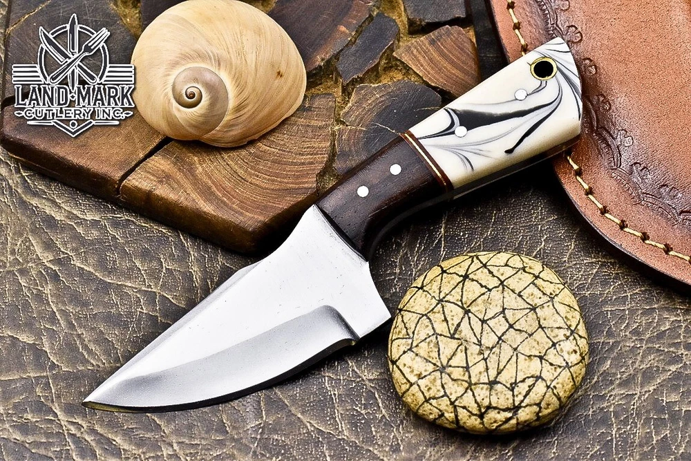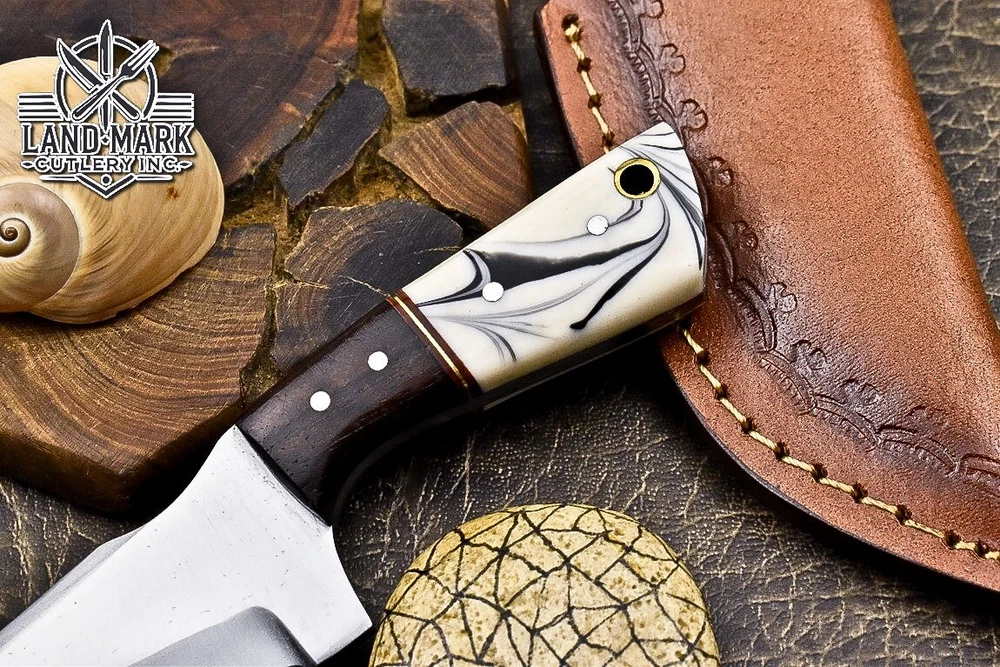 Custom Hand Made DAMASCUS STEEL HUNTING KNIFE WITH RESIN & WOOD HANDLE We offer a shipping discount for More then one purchased . And discount will be apply on combine invoice, Discount will not apply on separate payment. ITEM DETAILS OVER ALL LENGTH 3.0 inches long (Approx) HANDLE LENGTH 1.5 inches long (Approx) BLADE LENGTH 1.5 inches long (Approx) BLADE HARDNESS 58-60 HRC Which Holds The Sharp Edge For Long Time. HANDLE RESIN & WOOD COVER LEATHER SHEATH This Awesome custom made KNIFE has a nice hand forged with the combination of 4340 & 1080 steel. HOW OUR DAMASCUS IS MADE: All our Damascus is real and not just an acid etch. Damascus is a mixture of 1080HC and 4340 nickel carbon. You heat them up together and then fold the bar over and over to get the desired layers, ours are 396 layers. Then you burn the blade in acid, and it turns the nickel satin color and the high carbon turns blackish gray. This is how the layers are exposed to show the layers of the new steel created coined "Damascus". All Damascus is acid etched to show the layers. If you high polish the metal it will be shinny satin like all steels. Only after you burn the sides of the blade with acid do you see the layers of the two steels. Makes sense? After we make our knives we high polish the handles and put an edge on the blade. The high polishing buffs off the acid burned layer of the handle, and the blade edge is sharpened and the acid burned edge becomes satin. You can re-burn the tang of the blade near the handles and the edge of the blade and it will show the layers once more. All our knives are hand made, durable and unique ***** YOU WILL RECEIVED THE SAME KNIFE Qality Standards Our Damascus blades are made from high quality non-stainless steels which rival or exceed any Damascus blade made from the 10 series with 4340. Our Damascus combination has taken years to perfect and has been tested under a variety of application which will offer professional performance in categories of toughness, strength (lateral stress) and edge honing and holding ability. In a 5 spot Rockwell test our blades will average near or close to 58 which offers a perfect balances between its toughness and strength.Our blades due to carbon content need to be regularly treated with wax and/or 3 in 1 oil to maintain its superior quality. Questions if you have any question feel free to send us message we aim to answer all questions within 24 hours Feedback If you are not satisfied with our service please contact us before leaving any negative or natural feedback. We will resolve all issues as quickly as possible. Disclaimer We are not responsible for any injuries associated with the use of our tools. Our products are intended for legal use only by responsible buyers. Therefore, we will not sell our products to anyone under the age of 18. Before bidding please check your country laws as some countries Custom don't allow this. If your purchase is held by Custom Authorities in your country/State we will not be responsible for that and no refund will be issued Shipping We offer a 20% shipping discount for More then one purchased . And discount will be apply on combine invoice, Discount will not apply on separate payment We ship within 24 hours after receiving complete payment but this can be delayed due to week ends or Governments and Religious Festivals . . This is beyond our control and we apologize for this inconvenience. Precautions Our Tools are very sharp so open and use them very carefully We are not responsible for any injuries associated with the use of our tools Tips to Care knife 1. NEVER STORE YOUR KNIFE FOR LONG TIME IN LEATHER SHEATH. 2. LEATHER CAN ABSORB WATER, WHICH WILL RUST THE KNIFE. 3. ALWAYS CLEAN THE BLADE AFTER USING WITH OIL OR WAX