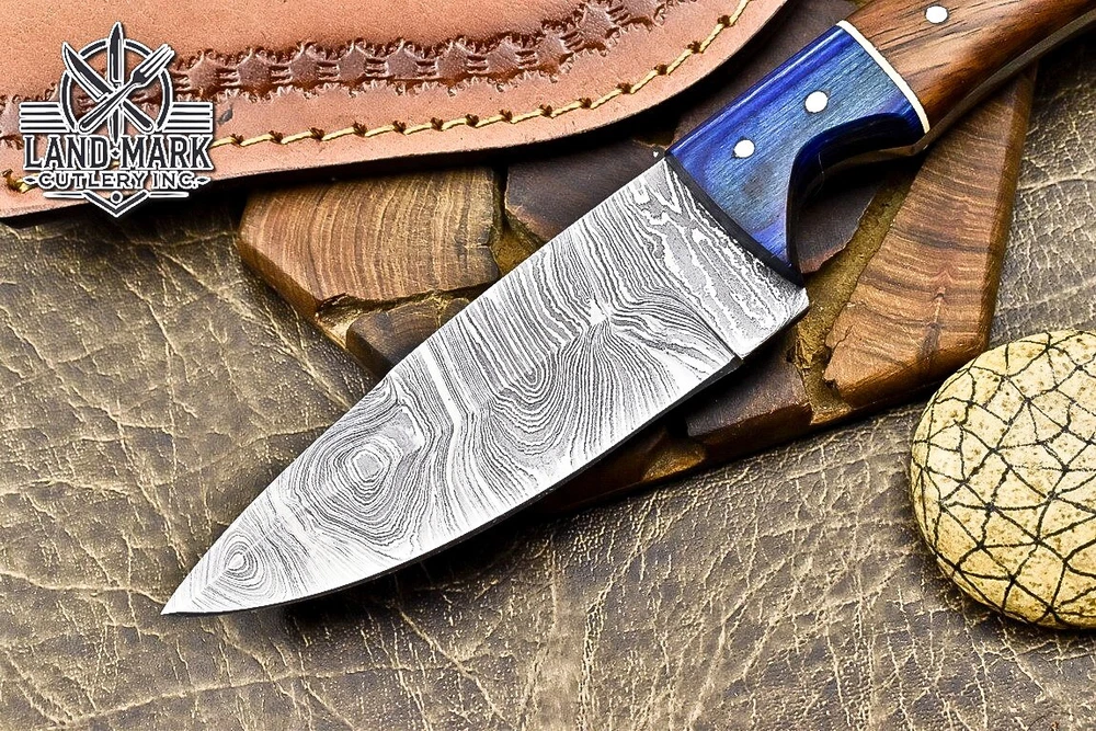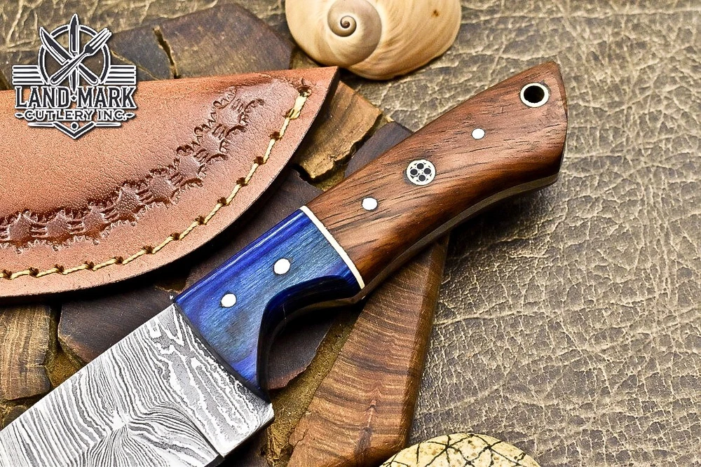BEAUTIFUL DAMASCUS HANDE MADE HUNTING SKINER KNIFE WITH ROSE WOOD HANDLE