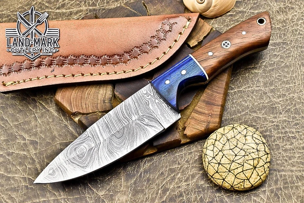 Custom Hand Made DAMASCUS STEEL HUNTING KNIFE WITH ROSE WOOD HANDLE We offer a shipping discount for More then one purchased . And discount will be apply on combine invoice, Discount will not apply on separate payment. ITEM DETAILS OVER ALL LENGTH 8.0 inches long (Approx) HANDLE LENGTH 4.0 inches long (Approx) BLADE LENGTH 4.0 inches long (Approx) BLADE HARDNESS 58-60 HRC Which Holds The Sharp Edge For Long Time. HANDLE ROSE WOOD COVER LEATHER SHEATH This Awesome custom made KNIFE has a nice hand forged with the combination of 4340 & 1080 steel. HOW OUR DAMASCUS IS MADE: All our Damascus is real and not just an acid etch. Damascus is a mixture of 1080HC and 4340 nickel carbon. You heat them up together and then fold the bar over and over to get the desired layers, ours are 396 layers. Then you burn the blade in acid, and it turns the nickel satin color and the high carbon turns blackish gray. This is how the layers are exposed to show the layers of the new steel created coined "Damascus". All Damascus is acid etched to show the layers. If you high polish the metal it will be shinny satin like all steels. Only after you burn the sides of the blade with acid do you see the layers of the two steels. Makes sense? After we make our knives we high polish the handles and put an edge on the blade. The high polishing buffs off the acid burned layer of the handle, and the blade edge is sharpened and the acid burned edge becomes satin. You can re-burn the tang of the blade near the handles and the edge of the blade and it will show the layers once more. All our knives are hand made, durable and unique ***** YOU WILL RECEIVED THE SAME KNIFE Qality Standards Our Damascus blades are made from high quality non-stainless steels which rival or exceed any Damascus blade made from the 10 series with 4340. Our Damascus combination has taken years to perfect and has been tested under a variety of application which will offer professional performance in categories of toughness, strength (lateral stress) and edge honing and holding ability. In a 5 spot Rockwell test our blades will average near or close to 58 which offers a perfect balances between its toughness and strength.Our blades due to carbon content need to be regularly treated with wax and/or 3 in 1 oil to maintain its superior quality. Questions if you have any question feel free to send us message we aim to answer all questions within 24 hours Feedback If you are not satisfied with our service please contact us before leaving any negative or natural feedback. We will resolve all issues as quickly as possible. Disclaimer We are not responsible for any injuries associated with the use of our tools. Our products are intended for legal use only by responsible buyers. Therefore, we will not sell our products to anyone under the age of 18. Before bidding please check your country laws as some countries Custom don't allow this. If your purchase is held by Custom Authorities in your country/State we will not be responsible for that and no refund will be issued Shipping We offer a 20% shipping discount for More then one purchased . And discount will be apply on combine invoice, Discount will not apply on separate payment We ship within 24 hours after receiving complete payment but this can be delayed due to week ends or Governments and Religious Festivals . . This is beyond our control and we apologize for this inconvenience. Precautions Our Tools are very sharp so open and use them very carefully We are not responsible for any injuries associated with the use of our tools Tips to Care knife 1. NEVER STORE YOUR KNIFE FOR LONG TIME IN LEATHER SHEATH. 2. LEATHER CAN ABSORB WATER, WHICH WILL RUST THE KNIFE. 3. ALWAYS CLEAN THE BLADE AFTER USING WITH OIL OR WAX