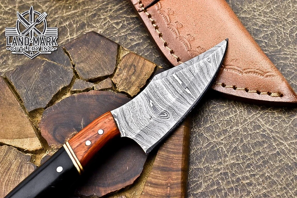 BEAUTIFUL DAMASCUS HANDE MADE HUNTING SKINNER KNIFE WITH BLACK BEAUTIFUL HANDLE