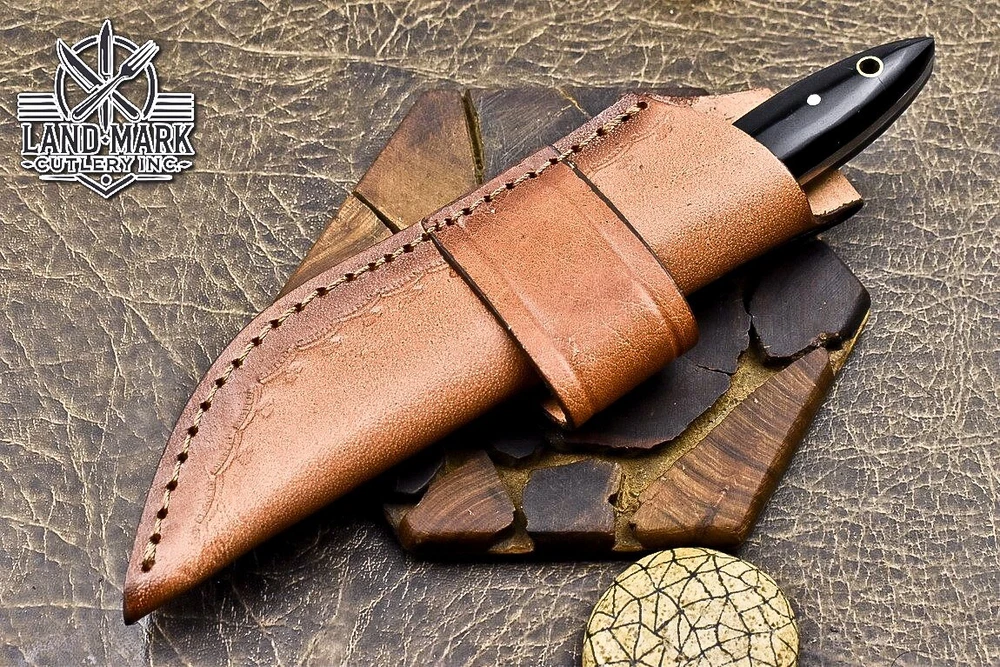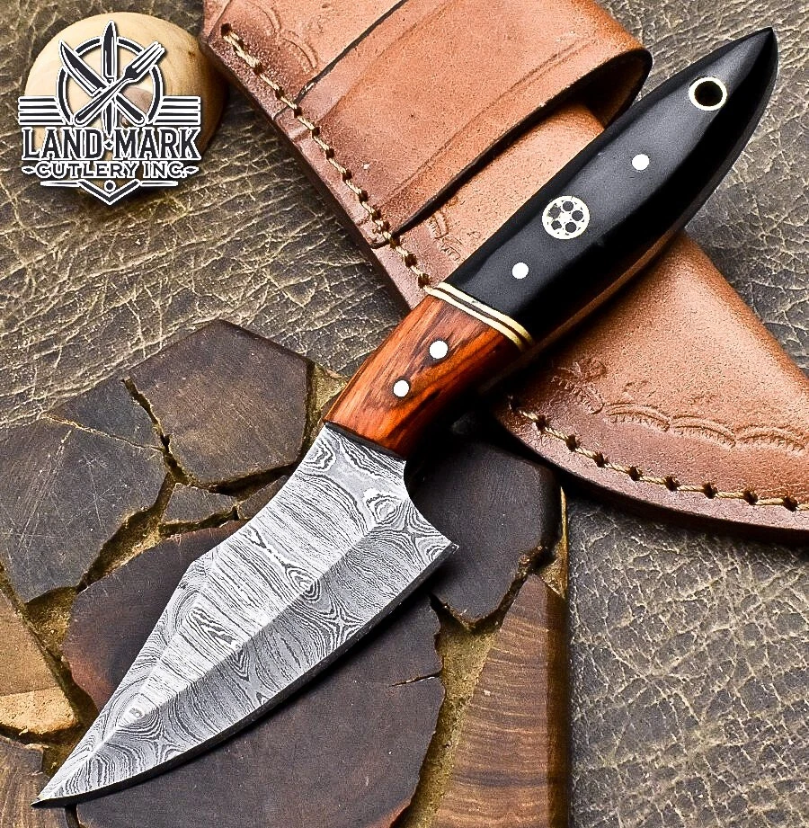 Custom Hand Made DAMASCUS STEEL HUNTING KNIFE WITH BLACK HANDLE We offer a shipping discount for More then one purchased . And discount will be apply on combine invoice, Discount will not apply on separate payment. ITEM DETAILS OVER ALL LENGTH 8.0 inches long (Approx) HANDLE LENGTH 4.0 inches long (Approx) BLADE LENGTH 4.0 inches long (Approx) BLADE HARDNESS 58-60 HRC Which Holds The Sharp Edge For Long Time. HANDLE BLACK COVER LEATHER SHEATH This Awesome custom made KNIFE has a nice hand forged with the combination of 4340 & 1080 steel. HOW OUR DAMASCUS IS MADE: All our Damascus is real and not just an acid etch. Damascus is a mixture of 1080HC and 4340 nickel carbon. You heat them up together and then fold the bar over and over to get the desired layers, ours are 396 layers. Then you burn the blade in acid, and it turns the nickel satin color and the high carbon turns blackish gray. This is how the layers are exposed to show the layers of the new steel created coined "Damascus". All Damascus is acid etched to show the layers. If you high polish the metal it will be shinny satin like all steels. Only after you burn the sides of the blade with acid do you see the layers of the two steels. Makes sense? After we make our knives we high polish the handles and put an edge on the blade. The high polishing buffs off the acid burned layer of the handle, and the blade edge is sharpened and the acid burned edge becomes satin. You can re-burn the tang of the blade near the handles and the edge of the blade and it will show the layers once more. All our knives are hand made, durable and unique ***** YOU WILL RECEIVED THE SAME KNIFE Qality Standards Our Damascus blades are made from high quality non-stainless steels which rival or exceed any Damascus blade made from the 10 series with 4340. Our Damascus combination has taken years to perfect and has been tested under a variety of application which will offer professional performance in categories of toughness, strength (lateral stress) and edge honing and holding ability. In a 5 spot Rockwell test our blades will average near or close to 58 which offers a perfect balances between its toughness and strength.Our blades due to carbon content need to be regularly treated with wax and/or 3 in 1 oil to maintain its superior quality. Questions if you have any question feel free to send us message we aim to answer all questions within 24 hours Feedback If you are not satisfied with our service please contact us before leaving any negative or natural feedback. We will resolve all issues as quickly as possible. Disclaimer We are not responsible for any injuries associated with the use of our tools. Our products are intended for legal use only by responsible buyers. Therefore, we will not sell our products to anyone under the age of 18. Before bidding please check your country laws as some countries Custom don't allow this. If your purchase is held by Custom Authorities in your country/State we will not be responsible for that and no refund will be issued Shipping We offer a 20% shipping discount for More then one purchased . And discount will be apply on combine invoice, Discount will not apply on separate payment We ship within 24 hours after receiving complete payment but this can be delayed due to week ends or Governments and Religious Festivals . . This is beyond our control and we apologize for this inconvenience. Precautions Our Tools are very sharp so open and use them very carefully We are not responsible for any injuries associated with the use of our tools Tips to Care knife 1. NEVER STORE YOUR KNIFE FOR LONG TIME IN LEATHER SHEATH. 2. LEATHER CAN ABSORB WATER, WHICH WILL RUST THE KNIFE. 3. ALWAYS CLEAN THE BLADE AFTER USING WITH OIL OR WAX
