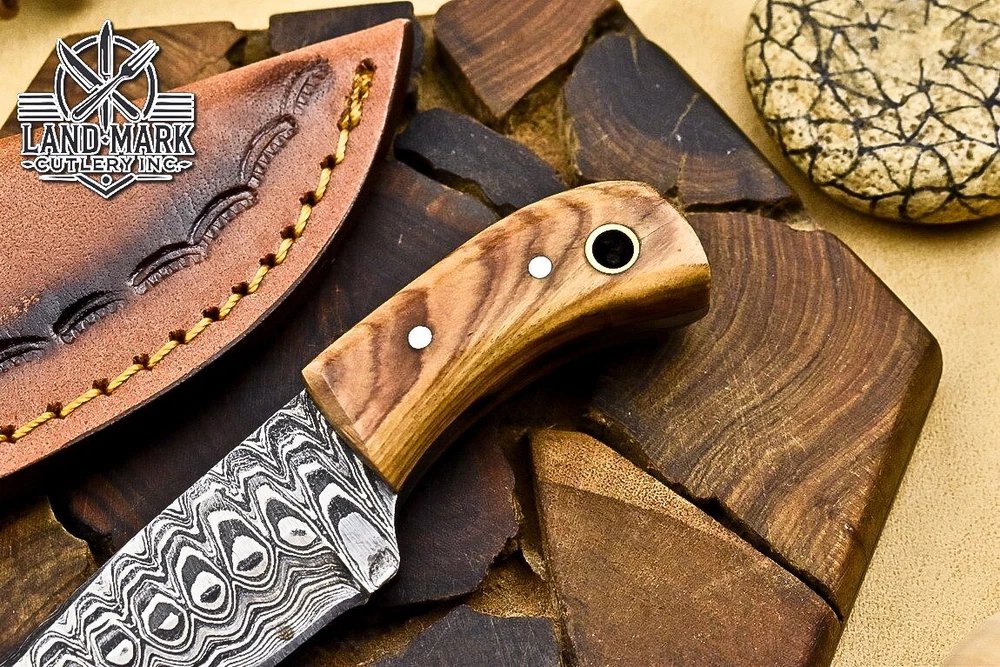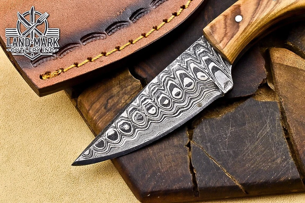 Custom Hand Made D2 STEEL HUNTING KNIFE WITH OLIVE WOOD HANDLE We offer a shipping discount for More then one purchased . And discount will be apply on combine invoice, Discount will not apply on separate payment. ITEM DETAILS OVER ALL LENGTH 3.0 inches long (Approx) HANDLE LENGTH 1.5 inches long (Approx) BLADE LENGTH 1.5 inches long (Approx) BLADE HARDNESS 58-60 HRC Which Holds The Sharp Edge For Long Time. HANDLE OLIVE WOOD COVER LEATHER SHEATH This Awesome custom made KNIFE has a nice hand forged with the combination of 4340 & 1080 steel. HOW OUR DAMASCUS IS MADE: All our Damascus is real and not just an acid etch. Damascus is a mixture of 1080HC and 4340 nickel carbon. You heat them up together and then fold the bar over and over to get the desired layers, ours are 396 layers. Then you burn the blade in acid, and it turns the nickel satin color and the high carbon turns blackish gray. This is how the layers are exposed to show the layers of the new steel created coined "Damascus". All Damascus is acid etched to show the layers. If you high polish the metal it will be shinny satin like all steels. Only after you burn the sides of the blade with acid do you see the layers of the two steels. Makes sense? After we make our knives we high polish the handles and put an edge on the blade. The high polishing buffs off the acid burned layer of the handle, and the blade edge is sharpened and the acid burned edge becomes satin. You can re-burn the tang of the blade near the handles and the edge of the blade and it will show the layers once more. All our knives are hand made, durable and unique ***** YOU WILL RECEIVED THE SAME KNIFE Qality Standards Our Damascus blades are made from high quality non-stainless steels which rival or exceed any Damascus blade made from the 10 series with 4340. Our Damascus combination has taken years to perfect and has been tested under a variety of application which will offer professional performance in categories of toughness, strength (lateral stress) and edge honing and holding ability. In a 5 spot Rockwell test our blades will average near or close to 58 which offers a perfect balances between its toughness and strength.Our blades due to carbon content need to be regularly treated with wax and/or 3 in 1 oil to maintain its superior quality. Questions if you have any question feel free to send us message we aim to answer all questions within 24 hours Feedback If you are not satisfied with our service please contact us before leaving any negative or natural feedback. We will resolve all issues as quickly as possible. Disclaimer We are not responsible for any injuries associated with the use of our tools. Our products are intended for legal use only by responsible buyers. Therefore, we will not sell our products to anyone under the age of 18. Before bidding please check your country laws as some countries Custom don't allow this. If your purchase is held by Custom Authorities in your country/State we will not be responsible for that and no refund will be issued Shipping We offer a 20% shipping discount for More then one purchased . And discount will be apply on combine invoice, Discount will not apply on separate payment We ship within 24 hours after receiving complete payment but this can be delayed due to week ends or Governments and Religious Festivals . . This is beyond our control and we apologize for this inconvenience. Precautions Our Tools are very sharp so open and use them very carefully We are not responsible for any injuries associated with the use of our tools Tips to Care knife 1. NEVER STORE YOUR KNIFE FOR LONG TIME IN LEATHER SHEATH. 2. LEATHER CAN ABSORB WATER, WHICH WILL RUST THE KNIFE. 3. ALWAYS CLEAN THE BLADE AFTER USING WITH OIL OR WAX
