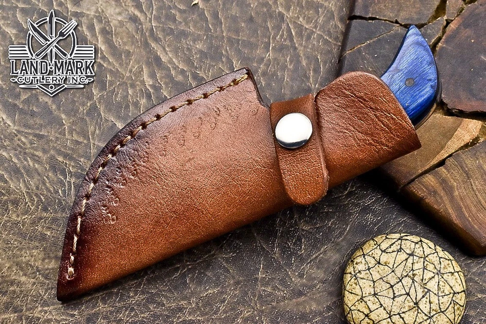 Custom Hand Made DAMASCUS STEEL HUNTING KNIFE WITH PAKKA WOOD HANDLE We offer a shipping discount for More then one purchased . And discount will be apply on combine invoice, Discount will not apply on separate payment. ITEM DETAILS OVER ALL LENGTH 3.0 inches long (Approx) HANDLE LENGTH 1.5 inches long (Approx) BLADE LENGTH 1.5 inches long (Approx) BLADE HARDNESS 58-60 HRC Which Holds The Sharp Edge For Long Time. HANDLE PAKKA WOOD COVER LEATHER SHEATH This Awesome custom made KNIFE has a nice hand forged with the combination of 4340 & 1080 steel. HOW OUR DAMASCUS IS MADE: All our Damascus is real and not just an acid etch. Damascus is a mixture of 1080HC and 4340 nickel carbon. You heat them up together and then fold the bar over and over to get the desired layers, ours are 396 layers. Then you burn the blade in acid, and it turns the nickel satin color and the high carbon turns blackish gray. This is how the layers are exposed to show the layers of the new steel created coined "Damascus". All Damascus is acid etched to show the layers. If you high polish the metal it will be shinny satin like all steels. Only after you burn the sides of the blade with acid do you see the layers of the two steels. Makes sense? After we make our knives we high polish the handles and put an edge on the blade. The high polishing buffs off the acid burned layer of the handle, and the blade edge is sharpened and the acid burned edge becomes satin. You can re-burn the tang of the blade near the handles and the edge of the blade and it will show the layers once more. All our knives are hand made, durable and unique ***** YOU WILL RECEIVED THE SAME KNIFE Qality Standards Our Damascus blades are made from high quality non-stainless steels which rival or exceed any Damascus blade made from the 10 series with 4340. Our Damascus combination has taken years to perfect and has been tested under a variety of application which will offer professional performance in categories of toughness, strength (lateral stress) and edge honing and holding ability. In a 5 spot Rockwell test our blades will average near or close to 58 which offers a perfect balances between its toughness and strength.Our blades due to carbon content need to be regularly treated with wax and/or 3 in 1 oil to maintain its superior quality. Questions if you have any question feel free to send us message we aim to answer all questions within 24 hours Feedback If you are not satisfied with our service please contact us before leaving any negative or natural feedback. We will resolve all issues as quickly as possible. Disclaimer We are not responsible for any injuries associated with the use of our tools. Our products are intended for legal use only by responsible buyers. Therefore, we will not sell our products to anyone under the age of 18. Before bidding please check your country laws as some countries Custom don't allow this. If your purchase is held by Custom Authorities in your country/State we will not be responsible for that and no refund will be issued Shipping We offer a 20% shipping discount for More then one purchased . And discount will be apply on combine invoice, Discount will not apply on separate payment We ship within 24 hours after receiving complete payment but this can be delayed due to week ends or Governments and Religious Festivals . . This is beyond our control and we apologize for this inconvenience. Precautions Our Tools are very sharp so open and use them very carefully We are not responsible for any injuries associated with the use of our tools Tips to Care knife 1. NEVER STORE YOUR KNIFE FOR LONG TIME IN LEATHER SHEATH. 2. LEATHER CAN ABSORB WATER, WHICH WILL RUST THE KNIFE. 3. ALWAYS CLEAN THE BLADE AFTER USING WITH OIL OR WAX
