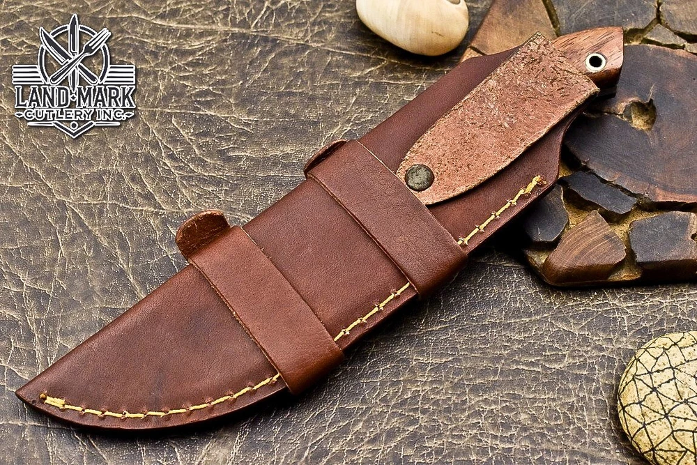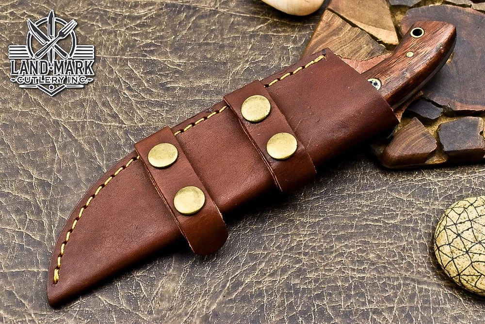 Custom Hand Made DAMASCUS STEEL HUNTING KNIFE WITH ROSE WOOD HANDLE We offer a shipping discount for More then one purchased . And discount will be apply on combine invoice, Discount will not apply on separate payment. ITEM DETAILS OVER ALL LENGTH 8.0 inches long (Approx) HANDLE LENGTH 4.0 inches long (Approx) BLADE LENGTH 4.0 inches long (Approx) BLADE HARDNESS 58-60 HRC Which Holds The Sharp Edge For Long Time. HANDLE ROSE WOOD COVER LEATHER SHEATH This Awesome custom made KNIFE has a nice hand forged with the combination of 4340 & 1080 steel. HOW OUR DAMASCUS IS MADE: All our Damascus is real and not just an acid etch. Damascus is a mixture of 1080HC and 4340 nickel carbon. You heat them up together and then fold the bar over and over to get the desired layers, ours are 396 layers. Then you burn the blade in acid, and it turns the nickel satin color and the high carbon turns blackish gray. This is how the layers are exposed to show the layers of the new steel created coined "Damascus". All Damascus is acid etched to show the layers. If you high polish the metal it will be shinny satin like all steels. Only after you burn the sides of the blade with acid do you see the layers of the two steels. Makes sense? After we make our knives we high polish the handles and put an edge on the blade. The high polishing buffs off the acid burned layer of the handle, and the blade edge is sharpened and the acid burned edge becomes satin. You can re-burn the tang of the blade near the handles and the edge of the blade and it will show the layers once more. All our knives are hand made, durable and unique ***** YOU WILL RECEIVED THE SAME KNIFE Qality Standards Our Damascus blades are made from high quality non-stainless steels which rival or exceed any Damascus blade made from the 10 series with 4340. Our Damascus combination has taken years to perfect and has been tested under a variety of application which will offer professional performance in categories of toughness, strength (lateral stress) and edge honing and holding ability. In a 5 spot Rockwell test our blades will average near or close to 58 which offers a perfect balances between its toughness and strength.Our blades due to carbon content need to be regularly treated with wax and/or 3 in 1 oil to maintain its superior quality. Questions if you have any question feel free to send us message we aim to answer all questions within 24 hours Feedback If you are not satisfied with our service please contact us before leaving any negative or natural feedback. We will resolve all issues as quickly as possible. Disclaimer We are not responsible for any injuries associated with the use of our tools. Our products are intended for legal use only by responsible buyers. Therefore, we will not sell our products to anyone under the age of 18. Before bidding please check your country laws as some countries Custom don't allow this. If your purchase is held by Custom Authorities in your country/State we will not be responsible for that and no refund will be issued Shipping We offer a 20% shipping discount for More then one purchased . And discount will be apply on combine invoice, Discount will not apply on separate payment We ship within 24 hours after receiving complete payment but this can be delayed due to week ends or Governments and Religious Festivals . . This is beyond our control and we apologize for this inconvenience. Precautions Our Tools are very sharp so open and use them very carefully We are not responsible for any injuries associated with the use of our tools Tips to Care knife 1. NEVER STORE YOUR KNIFE FOR LONG TIME IN LEATHER SHEATH. 2. LEATHER CAN ABSORB WATER, WHICH WILL RUST THE KNIFE. 3. ALWAYS CLEAN THE BLADE AFTER USING WITH OIL OR WAX
