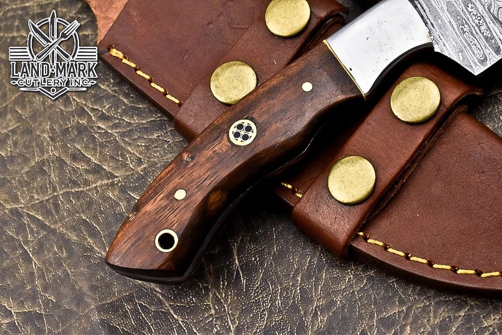 BEAUTIFUL DAMASCUS STEEL HUNTING SKINNER KNIFE ROSE WOOD HANDLE $ STEEL BOLSTER