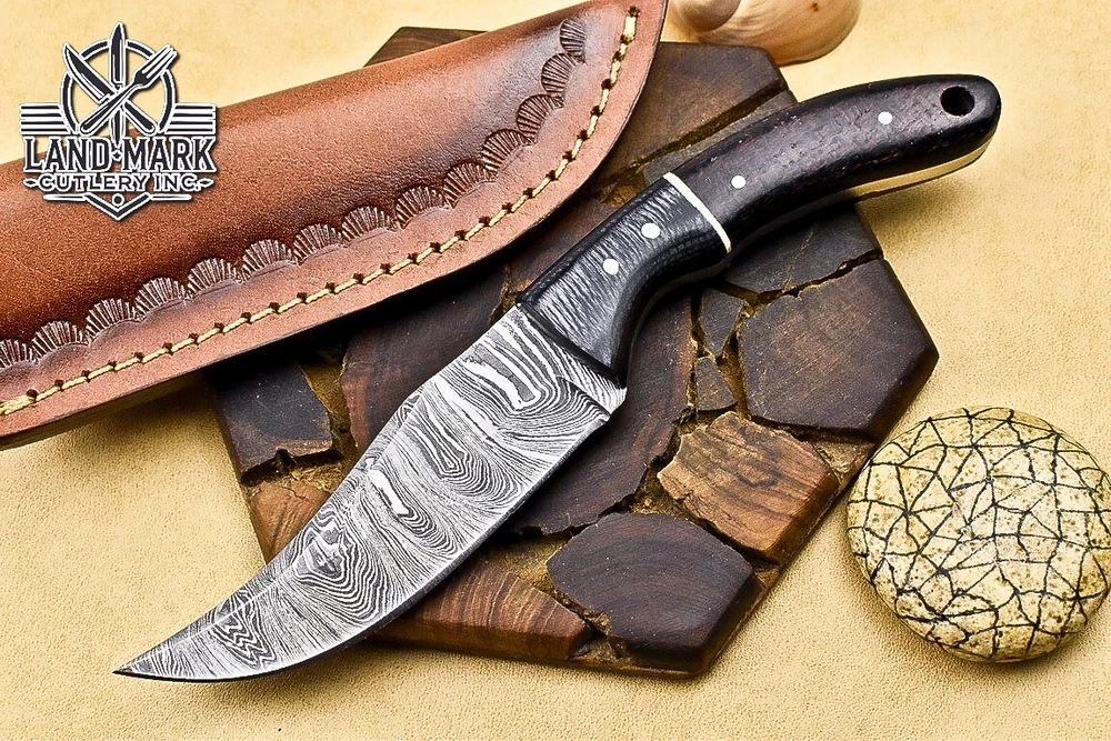 Custom Hand Made DAMASCUS STEEL HUNTING KNIFE WITH WOOD HANDLE We offer a shipping discount for More then one purchased . And discount will be apply on combine invoice, Discount will not apply on separate payment. ITEM DETAILS OVER ALL LENGTH 8.0 inches long (Approx) HANDLE LENGTH 4.0 inches long (Approx) BLADE LENGTH 4.0 inches long (Approx) BLADE HARDNESS 58-60 HRC Which Holds The Sharp Edge For Long Time. HANDLE BLACK HANDLE COVER LEATHER SHEATH This Awesome custom made KNIFE has a nice hand forged with the combination of 4340 & 1080 steel. HOW OUR DAMASCUS IS MADE: All our Damascus is real and not just an acid etch. Damascus is a mixture of 1080HC and 4340 nickel carbon. You heat them up together and then fold the bar over and over to get the desired layers, ours are 396 layers. Then you burn the blade in acid, and it turns the nickel satin color and the high carbon turns blackish gray. This is how the layers are exposed to show the layers of the new steel created coined "Damascus". All Damascus is acid etched to show the layers. If you high polish the metal it will be shinny satin like all steels. Only after you burn the sides of the blade with acid do you see the layers of the two steels. Makes sense? After we make our knives we high polish the handles and put an edge on the blade. The high polishing buffs off the acid burned layer of the handle, and the blade edge is sharpened and the acid burned edge becomes satin. You can re-burn the tang of the blade near the handles and the edge of the blade and it will show the layers once more. All our knives are hand made, durable and unique ***** YOU WILL RECEIVED THE SAME KNIFE Qality Standards Our Damascus blades are made from high quality non-stainless steels which rival or exceed any Damascus blade made from the 10 series with 4340. Our Damascus combination has taken years to perfect and has been tested under a variety of application which will offer professional performance in categories of toughness, strength (lateral stress) and edge honing and holding ability. In a 5 spot Rockwell test our blades will average near or close to 58 which offers a perfect balances between its toughness and strength.Our blades due to carbon content need to be regularly treated with wax and/or 3 in 1 oil to maintain its superior quality. Questions if you have any question feel free to send us message we aim to answer all questions within 24 hours Feedback If you are not satisfied with our service please contact us before leaving any negative or natural feedback. We will resolve all issues as quickly as possible. Disclaimer We are not responsible for any injuries associated with the use of our tools. Our products are intended for legal use only by responsible buyers. Therefore, we will not sell our products to anyone under the age of 18. Before bidding please check your country laws as some countries Custom don't allow this. If your purchase is held by Custom Authorities in your country/State we will not be responsible for that and no refund will be issued Shipping We offer a 20% shipping discount for More then one purchased . And discount will be apply on combine invoice, Discount will not apply on separate payment We ship within 24 hours after receiving complete payment but this can be delayed due to week ends or Governments and Religious Festivals . . This is beyond our control and we apologize for this inconvenience. Precautions Our Tools are very sharp so open and use them very carefully We are not responsible for any injuries associated with the use of our tools Tips to Care knife 1. NEVER STORE YOUR KNIFE FOR LONG TIME IN LEATHER SHEATH. 2. LEATHER CAN ABSORB WATER, WHICH WILL RUST THE KNIFE. 3. ALWAYS CLEAN THE BLADE AFTER USING WITH OIL OR WAX