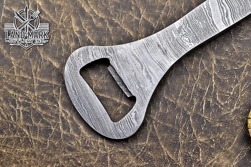 Custom Hand Made DAMASCUS STEEL BOTTEL OPNER We offer a shipping discount for More then one purchased . And discount will be apply on combine invoice, Discount will not apply on separate payment. ITEM DETAILS OVER ALL LENGTH 5.5 inches long (Approx) BLADE HARDNESS 58-60 HRC Which Holds The Sharp Edge For Long Time. HANDLE DAMASCUS COVER NO This Awesome custom made KNIFE has a nice hand forged with the combination of 4340 & 1080 steel. HOW OUR DAMASCUS IS MADE: All our Damascus is real and not just an acid etch. Damascus is a mixture of 1080HC and 4340 nickel carbon. You heat them up together and then fold the bar over and over to get the desired layers, ours are 396 layers. Then you burn the blade in acid, and it turns the nickel satin color and the high carbon turns blackish gray. This is how the layers are exposed to show the layers of the new steel created coined "Damascus". All Damascus is acid etched to show the layers. If you high polish the metal it will be shinny satin like all steels. Only after you burn the sides of the blade with acid do you see the layers of the two steels. Makes sense? After we make our knives we high polish the handles and put an edge on the blade. The high polishing buffs off the acid burned layer of the handle, and the blade edge is sharpened and the acid burned edge becomes satin. You can re-burn the tang of the blade near the handles and the edge of the blade and it will show the layers once more. All our knives are hand made, durable and unique ***** YOU WILL RECEIVED THE SAME KNIFE Qality Standards Our Damascus blades are made from high quality non-stainless steels which rival or exceed any Damascus blade made from the 10 series with 4340. Our Damascus combination has taken years to perfect and has been tested under a variety of application which will offer professional performance in categories of toughness, strength (lateral stress) and edge honing and holding ability. In a 5 spot Rockwell test our blades will average near or close to 58 which offers a perfect balances between its toughness and strength.Our blades due to carbon content need to be regularly treated with wax and/or 3 in 1 oil to maintain its superior quality. Questions if you have any question feel free to send us message we aim to answer all questions within 24 hours Feedback If you are not satisfied with our service please contact us before leaving any negative or natural feedback. We will resolve all issues as quickly as possible. Disclaimer We are not responsible for any injuries associated with the use of our tools. Our products are intended for legal use only by responsible buyers. Therefore, we will not sell our products to anyone under the age of 18. Before bidding please check your country laws as some countries Custom don't allow this. If your purchase is held by Custom Authorities in your country/State we will not be responsible for that and no refund will be issued Shipping We offer a 20% shipping discount for More then one purchased . And discount will be apply on combine invoice, Discount will not apply on separate payment We ship within 24 hours after receiving complete payment but this can be delayed due to week ends or Governments and Religious Festivals . . This is beyond our control and we apologize for this inconvenience. Precautions Our Tools are very sharp so open and use them very carefully We are not responsible for any injuries associated with the use of our tools Tips to Care knife 1. NEVER STORE YOUR KNIFE FOR LONG TIME IN LEATHER SHEATH. 2. LEATHER CAN ABSORB WATER, WHICH WILL RUST THE KNIFE. 3. ALWAYS CLEAN THE BLADE AFTER USING WITH OIL OR WAX