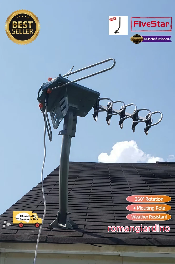 BEST Outdoor TV Antenna Pole Deal Motorized Amplified HDTV 1080P 4K 360 Rotation