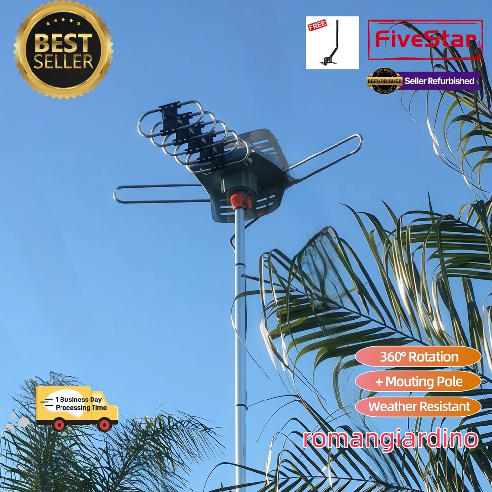 BEST Price Outdoor TV Antenna Pole Motorized 4K 360° HDTV Amplified