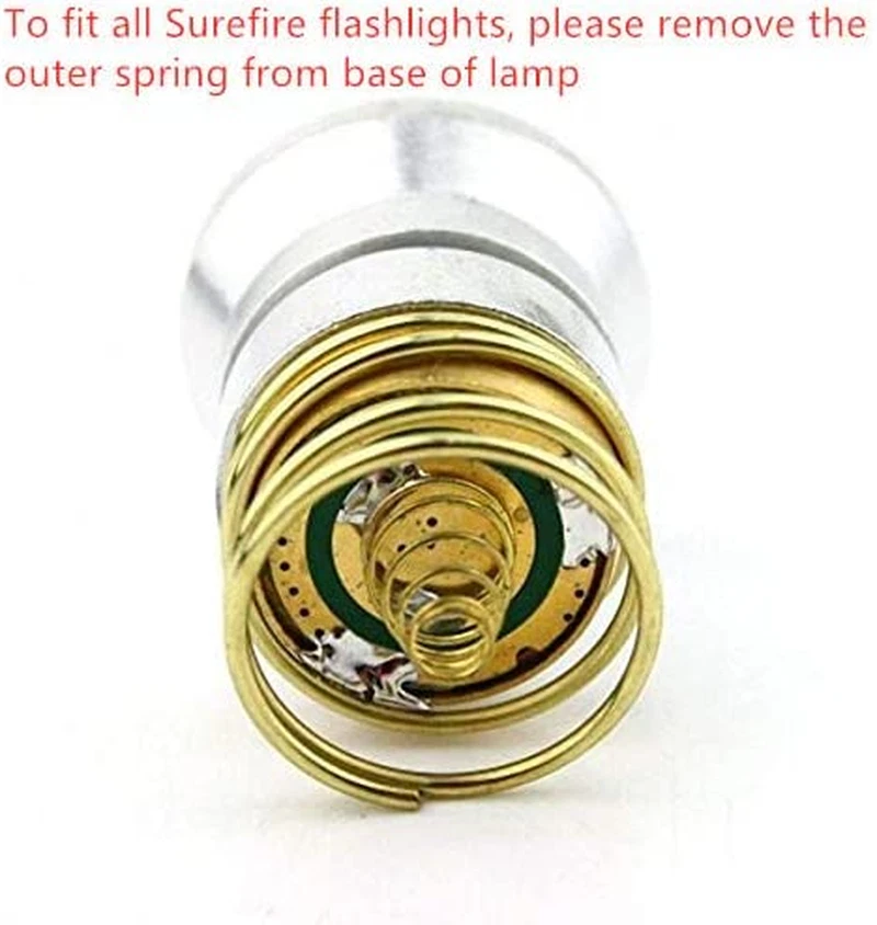 Store New Arrivals Add to Favorite View Feedback Contact BESTSUN Ultra Bright Flashlights XM-L2 LED Bulb Single Mode 1200 Lumens Drop-In Description Light Source Type LED Item model number BLB-WH-1M Number of Items 1 Power Source Solar Powered Control Method App Is Electric Yes Theme Illumination Bulb Diameter 26.5 Millimeters Controller Type Push Button Unit Count 1.0 Count Batteries Required? No Finish Smooth Bulb Shape Size T6 Average Life 100000 Hours Product Dimensions 1.04"W x 1.5"H Material Aluminium Model Name Flashlights Upgrade LED Bulb Is Discontinued By Manufacturer No Specific Uses For Product flashlight replacement led bulb module Included Components Flashlight replacement LED bulb Item Package Quantity 1 White Brightness 1200 Lumens Light Type LED Brightness 1200 Lumen Light Color cool white Item Weight 0.317 ounces Connectivity Technology NO, Infrared, USB Special Features High Power super bright lumens Special Feature High Power super bright lumens Color Rendering Index 80 Part Number BLB-WH-1M Color White Wattage 108 watts Incandescent Equivalent Wattage 9E+1 Watts Shape Round Batteries Included? No Voltage 9 Volts Manufacturer BESTSUN Brand BESTSUN Size 1 Count (Pack of 1) ULTRA BRIGHT LIGHT: Used the newest XM-L2 LED, producing very bright beam of light up to 1200 Lumens. LED light color: cool white. SHINY SMOOTH REFLECTOR: Provides a more concentrated beam, and therefore a better throw (range). FINE MATERIAL: The body built of high quality aluminum alloy, and has a very solid construction. EFFECTIVE AND ENERGY SAVING: Low heating, long service life. Never buy bulbs again - LED lifetime over 100,000 hours FIT FOR: UltraFire WF-501A,WF-501B,WF-501C,WF-501D,WF-502D,WF-502B,WF-503B,WF-504B,WF-501N,L2,C1;UniqueFire M2,UniqueFire R5;TrustFire S-R5;SureFire 6P, G2,9P. Product Description Super Bright Upgraded LED Bulb Conversion kit for Surefire Flashlights COMPATABILITY DISCLAIMER: This is a one size general led bulb upgraded conversion kit, listed below are many models that this drop-in will fit. Due to unforeseen variations in manufacturer models, this drop-in is not 100% compatible for these flashlights, some series may need further modification. NOTE: To use with all Surefire flashlights, remove outer (large) spring from base of lamp Confirmed fit for Surefire 6P, 6Z, 9P, 9Z, Z2, Z3 Confirmed fit for Surefire G2, G3 with occasional modification required Reported to fit: Surefire C2, M2 Series Modification for use with Surefire M951 & 952 Confirmed fit: Solarforce L2, L2M, L2P, L2T Confirmed fit: Lumaforce LF1, LF2 Series Confirmed fit: Ultrafire and similar 501B, 502B, 503B, 504B Reported to fit: G&P T6, T9, X6, M3, R12 Reported to fit: Uniquefire L2 Reported to fit: Ultrafire G60, G90, G120 Reported to fit: SpiderFire L2 Series, G&P T-6, T-9, R12, , Hugsby S3, M2, G2 Package Includes: 1 x New Super Bright L2 LED Singel Mode P60 Drop-in Upgraded Bulb Module Features: ULTRA BRIGHT SINGLE MODE LIGHT Used the newest L2 LED bulb, producing very bright beam of light up to 1200 Lumens. Much brighter than the original led bulb, a great upgrade conversion kit. LED light color: cool white. Light mode: single mode at high only FINE MATERIAL AND ENERGY SAVING The body built of high quality aluminum alloy, and has a very solid construction. Low heating, long service life. Never buy bulbs again - LED lifetime over 100,000 hours SHINY SMOOTH REFLECTOR Provides a more concentrated beam, and therefore a better throw range. HOW TO INSTALL THE BULB MODULE FOR SUREFIRE FLASHLGIHTS 1. Take out the original led bulb module, and is ready for replacing new BESTSUN upgraded led bulb module. 2. Remove the outer (large) spring from the base of new upgraded module. 3. Install the new upgraded led bulb module, and then install the battery to enjoy the new brighter flashlight DIRECT FIT FOR WF-501B AND WF-502B FLASHLIGHTS The flashlight bulb can directly fit for the WF-501B and WF-502B flashlight series. No modificaiton needed. SUPER BRIGHTER THAN THE ORIGINAL P60 BULB YOU WILL SEE MUCH DIFFERENCE ON THE BRIGHTNESS WITH THIS UPGRADED LED BULB MODULE. ABOUT US We offer the best prices around on high quality products. Our E-store includes media such as books, movies, music and games while offering electronics, toys, sporting apparel, clothing, tools, general home, garden items and more. SHIPPING We are always working hard to ensure your package arrives as soon as possible. Please understand that some factors like weather, high postal traffic, and the performance of shipping companies are outside of our control. We offer free shipping to the lower 48 states and ship within 2 business days of payment, usually sooner. We do not accept P.O. Boxes. Please provide a physical address. RETURNS We offer a 30-Day Return Policy on items which you are not completely satisfied with. You have the option for a full-refund or an exchange of the item. No returns are available on items shipped outside of the USA. PAYMENT We accept PayPal. CONTACT US This page content is yet to come Please ad us to your favorite seller and visit again later Thank You CUSTOMER SATISFACTION We try our very best to make sure every customer is completely satisfied. If there's a problem, message us! We're happy to help.