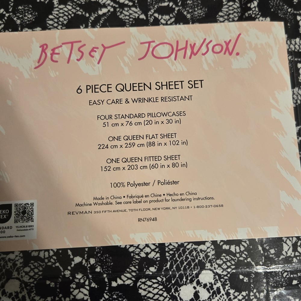 The BETSEY JOHNSON Queen White Black Lovely Lace Skulls Skull Sheet Set 6pc is a stylish and edgy addition to any bedroom. Made from 100% polyester, this sheet set features a striking skull pattern in black, perfect for those who love a touch of skeletons and skulls in their decor. Easy to care for with machine washable instructions, this set is sure to add a touch of whimsy and personality to your space.