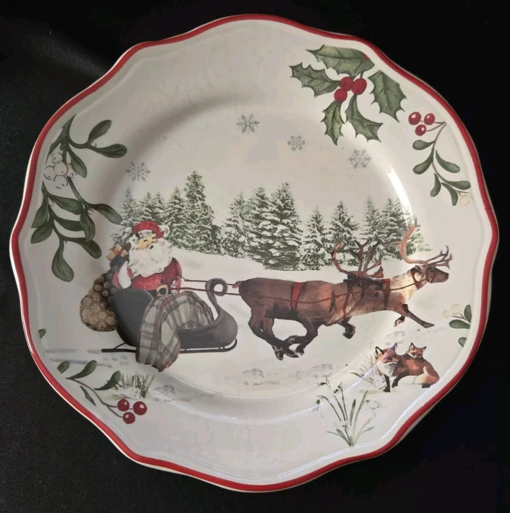 Winter Forest Salad plate is off white with santa and a sleigh in the snow and a scalloped rim. Measures 8 3/4" in diameter. Check out my other items, I combine shipping! Payment Payment is requested within 3 days. If no contact or payment is made within 3 days, a dispute will be filed and the item relisted. Shipping Your item(s) will be shipped within 1 business day of payment received. Delivery confirmation is included on packages shipped to a US destination. Insurance is included. For a quote, use the shipping calculator in the listing under the shipping tab. International Shipping All duties or tariffs, if any, are the responsibility of the buyer and seller does not have any control over these charges or delays due to custom's inspections. Returns Please contact me if you have any problems. Buyer to pay return shipping unless the item is not as described.