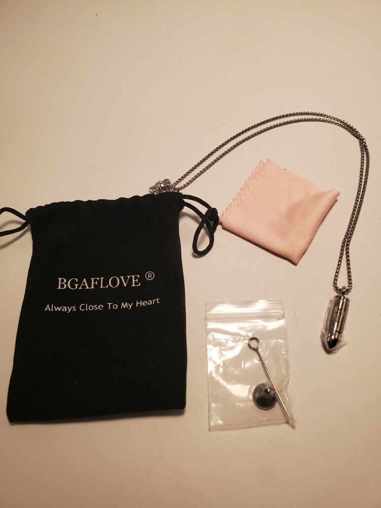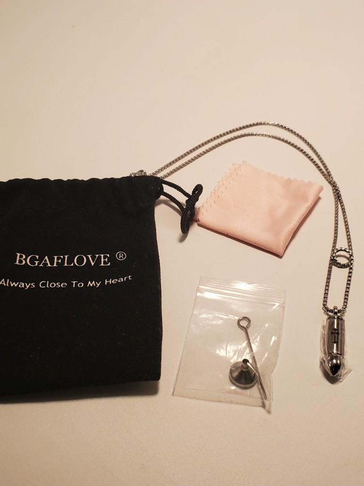 BGAFLOVE Pet Cremation Urn Jewelry Kit Bullet w/Cross Print Necklace & Fill Tools & Polish Cloth, Stainless Steel Silver