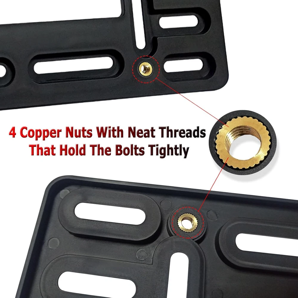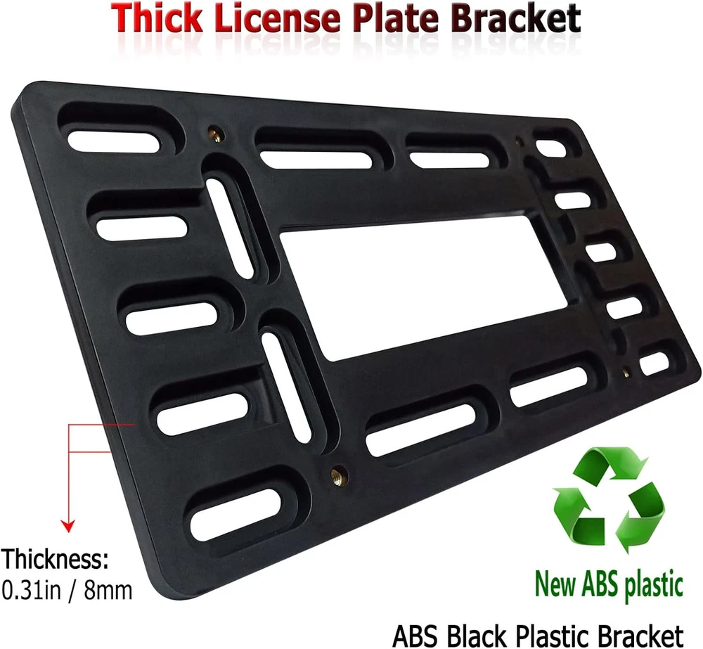 BGGTMO Front License Plate Bracket Holder - Bumper Black Product Details Color: Black Front Bracket Brand: BGGTMO Vehicle Service Type: Car Product Dimensions: 6"L x 12"W Item Weight: 0.17 Kilograms Manufacturer: YoUoY Item Weight: 5.9 ounces Item model number: YY-License Plate Frame Manufacturer Part Number: YY-License Plate Frame Color: Black Front Bracket Brand: BGGTMO Vehicle Service Type: Car Product Dimensions: 6"L x 12"W Item Weight: 0.17 Kilograms MaterialFit Type: PlasticUniversal Fit Front License Plate Mounting Kit - If you need to mount a front license plate and your car's bumper has no holes or only 2 pre-drilled holes, you can choose our front license plate mounting kit. You can use stainless steel license plate screws to lock the bracket to the pre-drilled front bumper, or use stainless steel cable ties to attach the bracket to the radiator grille, No need to destroy your existing bumper Universal License Plate Adapter - This front license plate holder is made of black ABS plastic which resists corrosion and rust. The metal license plate does not directly contact the car paint, avoid scratches and noise, protect the license plate rustproof and rattle proof Easy to Install - Our front tag bracket Screw holes come with thread - 4 copper nuts with neat threads that hold the license plate on the bracket tightly. The kit includes license plate mounting hardware: stainless steel license plate screws, black screw caps , stainless steel cable ties. License plate Anti -Theft - The front plate holder kit is available in 3 types and sizes of stainless steel license plate screws: M6*20mm self-tapping or mechanical screws secure the plate bracket to the bumper, and M6*12mm mechanical bolts secure the car tag plate to the bracket. The anti-theft license plate screws with the Hexagonal plum button-head can protect the security of the license plate