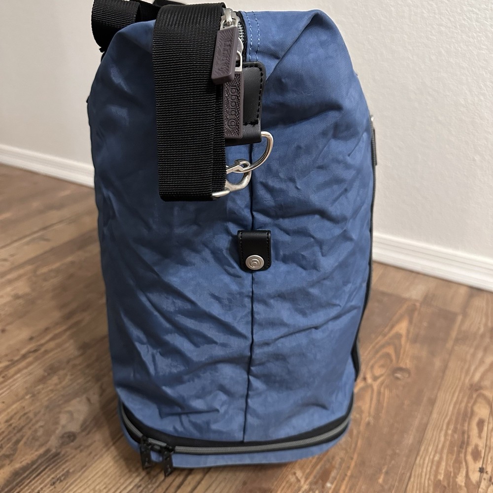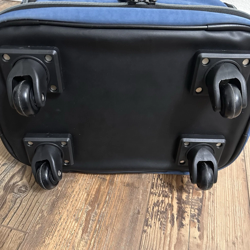 Experience the ease of travel with the Biaggi Zipsak 18” Foldable Spinner Duffle. Designed for convenience, this duffle bag features a sturdy nylon construction, offering durability and a lightweight feel. Its blue solid pattern exudes a timeless elegance, making it a versatile choice for any traveler. This luggage is engineered with four smooth-rolling wheels, ensuring effortless mobility through bustling terminals. The adjustable straps allow for a customizable fit, while the water-resistant material protects your belongings from the elements. Whether you're navigating busy airports or city streets, this convertible soft case is designed to meet the demands of any journey.