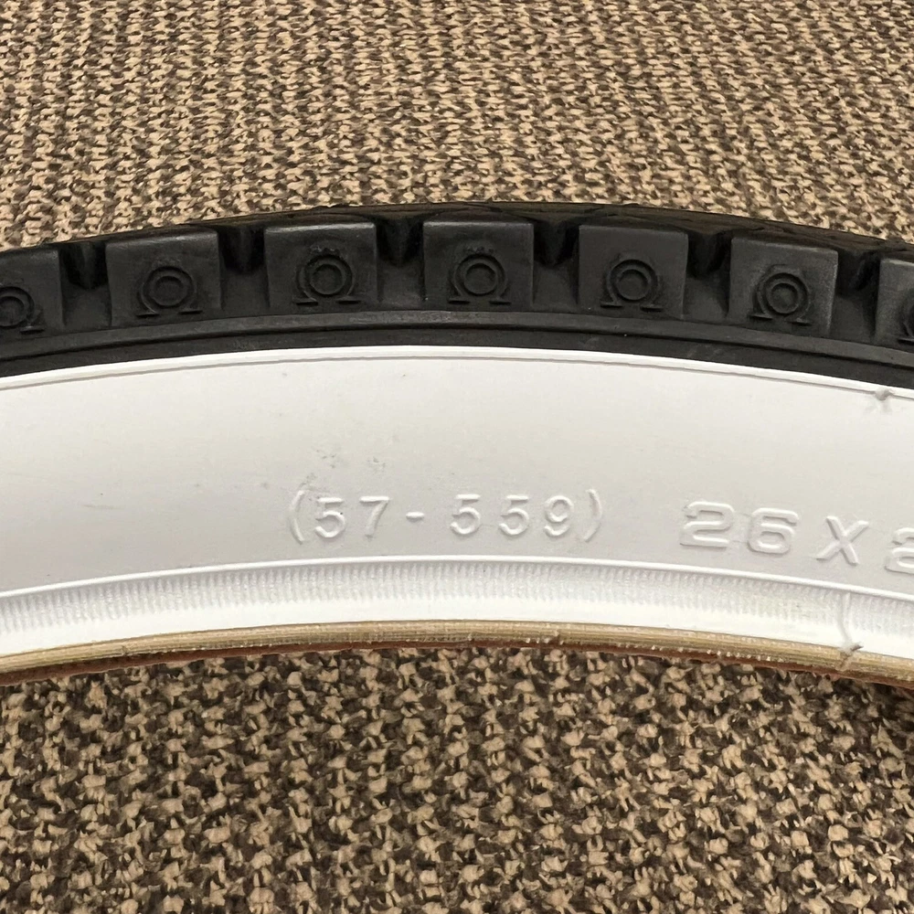 YOUR PURCHASE HELPS SUPPORT THE BICYCLE HEAVEN MUSEUM IN PITTSBURGH P.A. AND THE HISTORY OF BICYCLES! THANK YOU. ITEM DESCRIPTION: THIS IS A MINT NEW TIRE SET OF 2 BICYCLE TIRES. THEY FIT MANY SCHWINN BIKES THAT HAVE THE S - 2 RIMS / WHEELS 26 X 2.125" INCH. THEY ARE RARE AND HARD TO COME BY WITH THE GOOD YEAR TREAD STYLE TIRES. WHY PAY TONS MORE FOR OLD VINTAGE OLD DRY ROT SCHWINN TIRES WHEN YOU CAN GET THIS MINT NEW SET THAT LOOK CLOSE TO THE SAME WITH THE GOOD YEAR TREAD STYLE BUT FOR TONS LESS. THE TIRES WILL FIT SCHWINN PHANTOM, TYPHOON, STARLET, PANTHER, B-6 AND MANY OTHER SCHWINN BIKES. THEY DO FIT ALL THE OTHER BRAND OF BALLOON TIRE BIKES. JJ - 59406