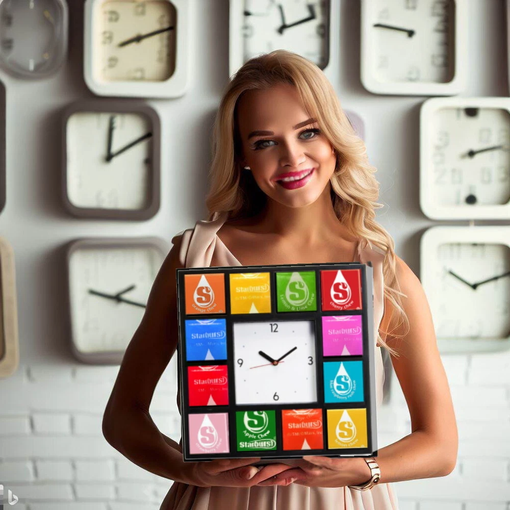Shipping BIG Starburst Fruit Candy Chews Clock Square Say goodbye to small, round, one image cookie cutter clocks. This is a great clock. Total item is 10 1/2 inches by 10 1/2 inches. It sticks out from the wall about an inch and a half. It keeps great time. New technology makes it run up to a year on one AA battery. The clock face is surrounded by 12 rich images. Each individual photo is acrylic encased for protection. This is for the true collector. Your clock will come fully assembled ready to hang on any wall. Shipping & Handling Back to Top US Shipping $9.88 USPS Priority Mail® International Shipping $22.54 USPS First-Class Mail International More than just a pretty picture. Try Vendio Image Hosting. Make your listings stand out with FREE Vendio custom templates! FREE scheduling, supersized images and templates. Get Vendio Sales Manager. Over 100,000,000 served. Get FREE counters from Vendio today!