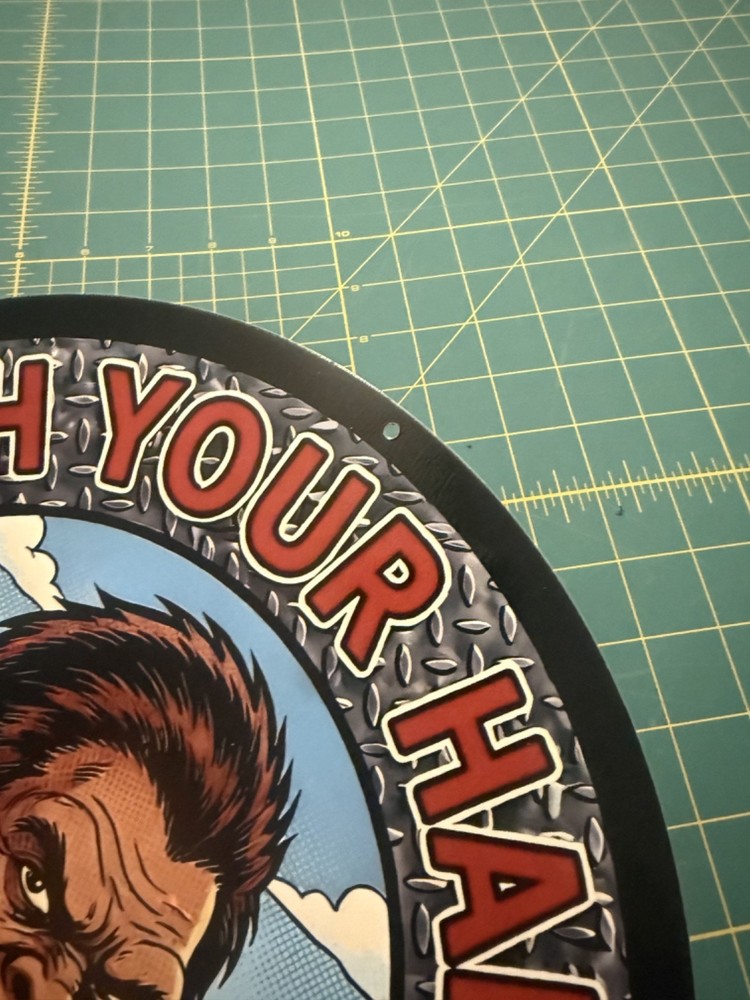 Funny Bigfoot sign, reads "Wash Your Hands You Filthy Animal." 11.5" round aluminum sign, great for bathroom, workshop, man cave, restroom, bar or tavern, garage. Great gift for the Cryptid enthusiast in your family! Brand new, with mounting holes centered at the top and bottom, lightweight and easy to mount. Ships with padding in a rigid cardboard box to make sure it arrives to your destination safely. Made in USA. Mounting hardware not included. Bigfoot sign, Bigfoot humor, Sasquatch sign, funny Bigfoot sign, funny bathroom sign, bar sign, garage sign, workshop sign, metal restroom sign, men's room sign, Sasquatch, Cryptid