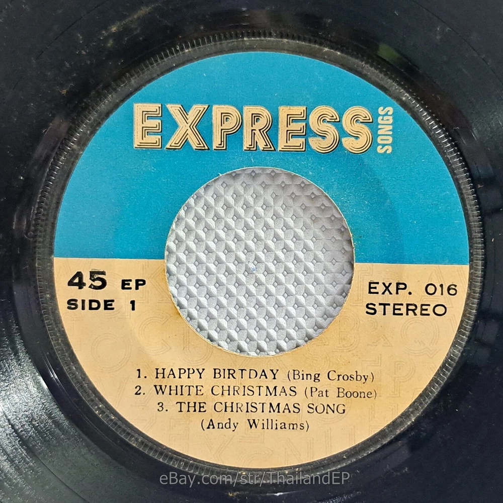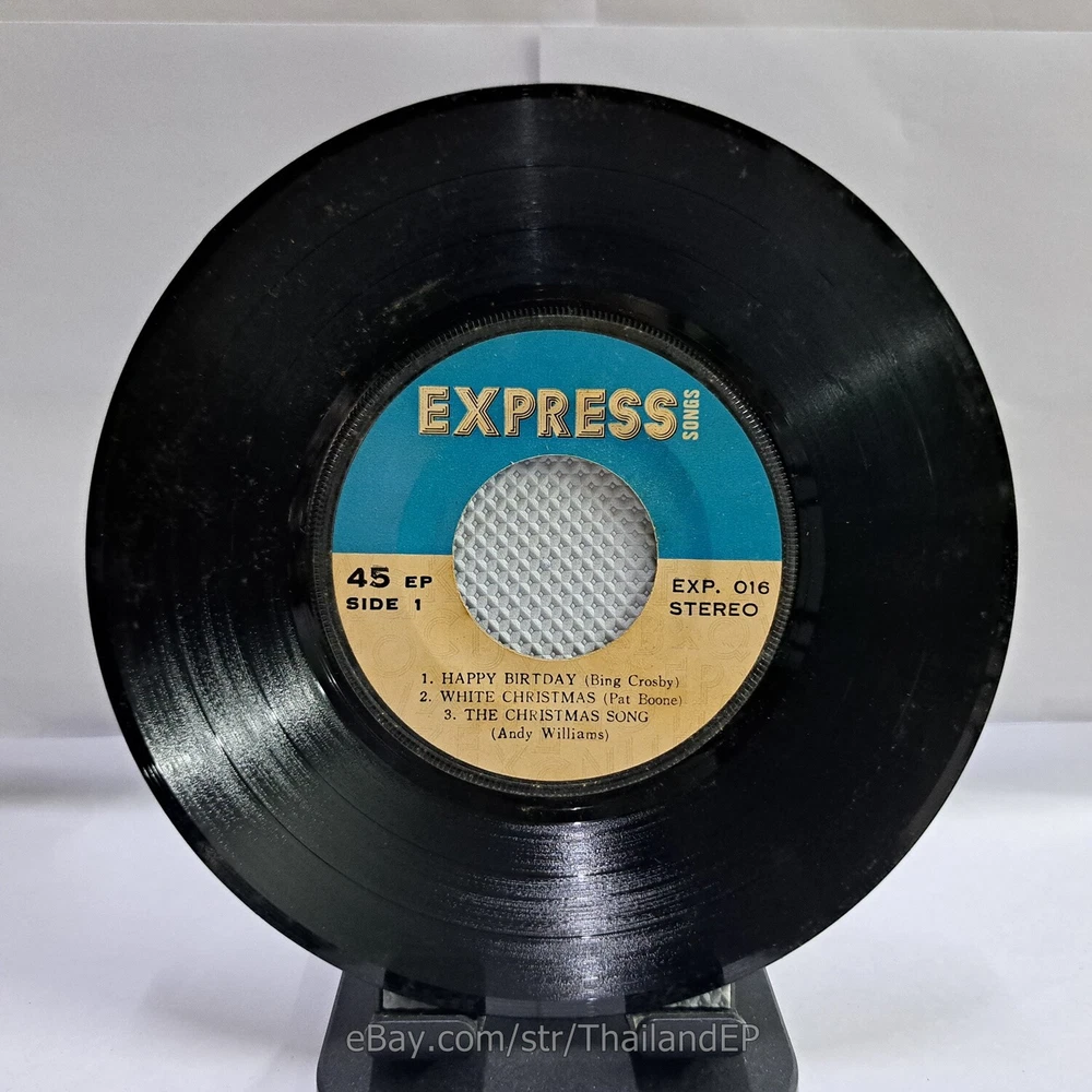 Welcome to The World of ""Thailand Vinyl Records"".Very rare and beutiful picture of cover. Check everyday . This item is for a true 7" single collector. It was printed and sold locally as limited EP back in the early 70's. Only few copies were spread outside Thailand. Most professional record collectors know that it is scarce nowadays and is absolutely a collector's item. If you know a UK magazine called RECORD COLLECTOR then you must have read many articles mentioning THAILAND EP and this is it !!! Here is your chance to own one-of-a-kind piece of Asian's 7" single history. Description Records !!! DETAIL SONG and ARTIST !!! Side A: A1 = Bing Crosby - Happy Birtday / A2 = Pat Boone - White Christmas Side B: B1 = Pat Boone - Jingle Bells / B2 = Andy Williams - Silen Night, Holy Night Label&Catalogue number : : EXP016 Country of release : THAILAND Condition (Sleeve/Disc) : VG+ / VG++ and pls see picture too. Shipping I am seller in Thailand not USA.So I can not ship 4$ as policy pls understand this real rate from oversea . Price for shipping(Airmail )&Packaging to worldwide only US 14.99 USD .Except Asia and JAPAN only 14.99 USD. You can save cost for combine shipping only 3 USD$ per each. 2xEP=17.99 USD$ , 3xEP=20.99 USD$ . My package very safety by big cardboard don't worry about your's EP/PS/LP. Time delivered 21-45 days . ***All item : have tracking system no need add money*** **For normal shipping (Airmail).Time delivery to ITALY maybe use 1-2 Months, France use 1-2 Months.But Don't worry item will arrived to you sure!!.For fastest and High value you can use Express Mail Service cost for1 EP =39 USD.EP will arrived to you within 5-7 Days. ***All shipment have fully tracking system *** Payment PAYMENT : I accept the follow payment by eBay managed , . My ID eBay provide by eBay .Account will be provide at the end auction.Charges to be covered by winner. If you have question pls email to me anytime i can answer immediatly. I have many EP,PS 7" Thailand Pls Click => View seller's other items Check my feedback , I care and honest all customer.I welcome 0 feedback but contact me first if you will bidding. Good Luck !!!! and Enjoy . 45 RPM / EP/ LP Grading Scale: Mint /NM/ Excellent(VG++) /VG+/ VG /G+ /Good(G) / Fair / Poor / Bad (According Record Collector Magazine (UK)) LOT153-10EXP016
