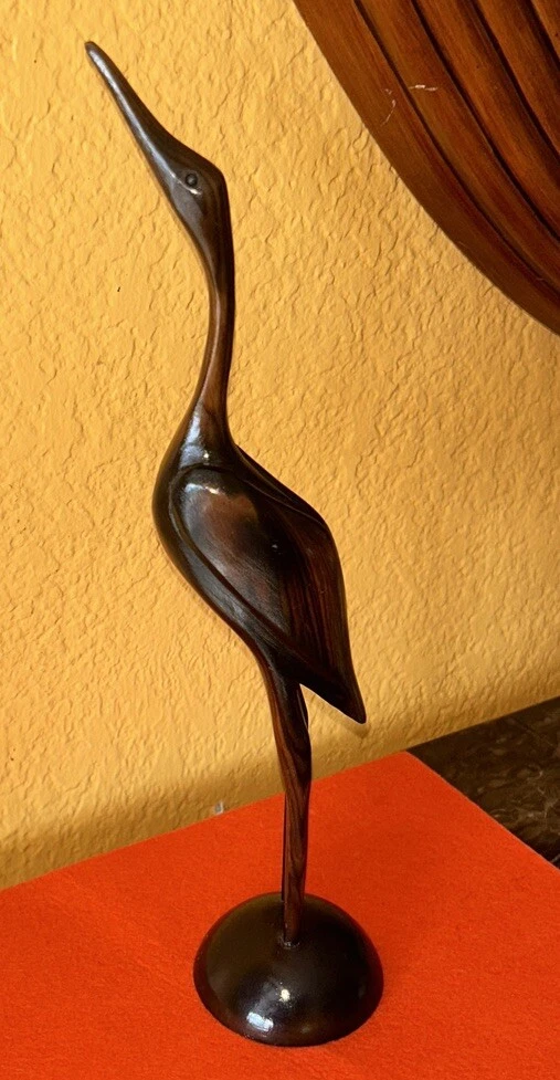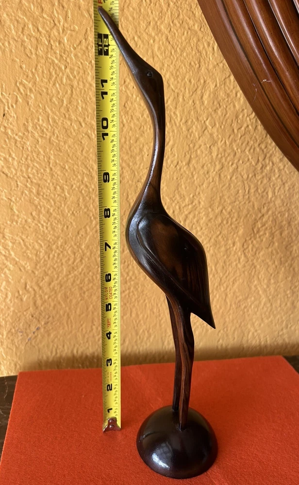 BIRD STATUE FIGURINE HAND CARVED WOOD 12 1/2 “Tall Pre owned but in good condition Please see pictures for measurements and details No mark