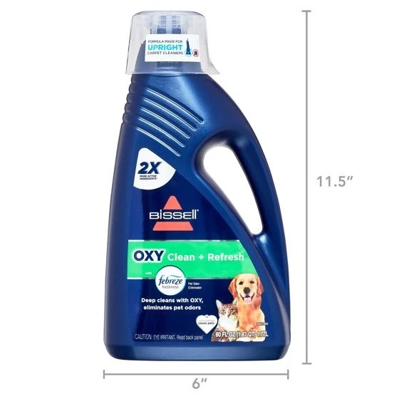 About this item Every Purchase Saves Pets™. BISSELL proudly supports BISSELL Pet Foundation® and its mission to help save homeless pets. Deeper clean with oxy action. Removes pet stains and deep down dirt. Eliminates pet odors and freshens while you clean. Safe to use on area rugs, carpet and upholstery. Formulated for BISSELL® upright carpet cleaners. Earth friendly formula. Biodegradable detergents. Contains no heavy metals, phosphates or dyes. Safe to use around pets and kids when used as directed.