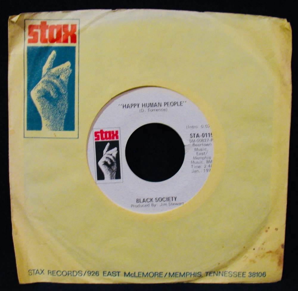 ♫♪♫ OLD RADIO STATION STOCK ♫♪♫ A nice in demand Mod Northern Soul DJ 45 from Black Society The songs are: LOOK AROUND YOU b/w HAPPY HUMAN PEOPLE Recorded on the Stax record label. The record number is: STA-0115 The record is in VG++ to Near Mint condition... a solid and very enjoyable play The labels are in very nice condition... (see pictures for up-close details) If you have any questions... please feel free to contact me. The Record Will Be Placed In A New 45 Paper And Then In A Protective Plastic Cover. We Ship Using Supplies Purchased From "BAGS UNLIMITED" For The Finest In Record Shipping Protection. ♫♪♫ WE COMBINE SHIPPING ON MULTIPLE 45 PURCHASES ♫♪♫ International Bidders Please Note ... Ebay's new required statement... • Import duties, taxes and charges are not included in the item price or shipping charges. These charges are the buyer’s responsibility. • Please check with your country’s customs office to determine what these additional costs will be prior to bidding/buying.”