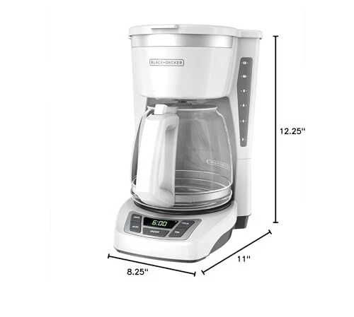 BLACK+DECKER 12-Cup Digital Coffee Maker, CM1160W, Programmable, Washable Basket Filter, Sneak-A-Cup, Auto Brew, Water Window, Keep Hot Plate, White Please refer to user guide or user manual or user guide (provided below in PDF) before first use Sneak-A-Cup - This feature temporarily stops the flow of coffee so you can pour your first cup before brewing ends without making a mess Easy-View Water Window - The front-facing window shows you the exact amount of water that will turn into coffee; Cord Storage: Yes Digital Controls with Rubberized Feel - Large, rubberized buttons give you full control of the coffeemaker, and the easy-read screen displays the clock, brew time, and programming options Brew your daily coffee fast with the BLACK+DECKER™ 12-Cup* Programmable Coffeemaker. QuickTouch™ Programming buttons make it easy to set the 24-hour auto brew feature and shave some time off of your morning routine. Other useful features include Sneak-A-Cup™ Technology, the 12-cup* Duralife™ glass carafe, and a washable brew basket. *Cup equals approximately 5 ounces (varies by brewing technique) Black+Decker and the Black+Decker logo are trademarks of The Black & Decker Corporation and are used under license. Shipping We offer FREE shipping on all orders! We ship within Three business days of payment, usually sooner. We use a selection of shipping services such as UPS, FedEx, USPS etc. We only ship to the lower 48 states, no APO/FPO addresses or PO Boxes allowed. Local pickups and combined shipping options are not provided at this time. Return You can return a product for up to 30 days from the date you purchased it ONLY if it's in the original condition. The product cannot be used or open. Any product you return must be in the exact same condition you received it and in the original packaging. Please keep the receipt. Feedback Customer satisfaction is very important to us. If you have any problem with your order, please contact us and we will do our best to make you satisfied. Contact Us If you have any queries, please contact us via ebay. We usually respond within 24 hours on weekdays. Please visit our eBay store to check out other items for sale! Thank you for shopping at our store.