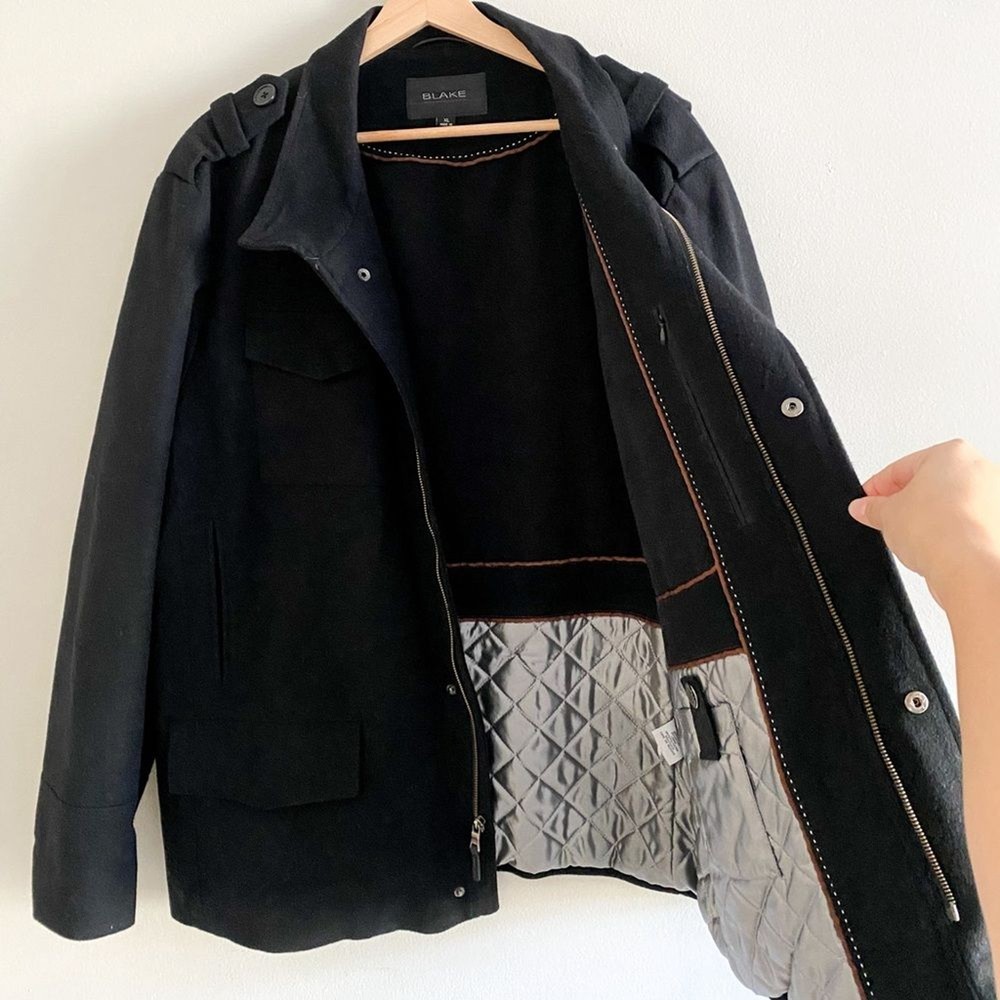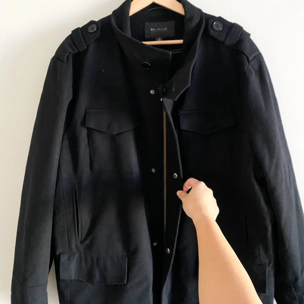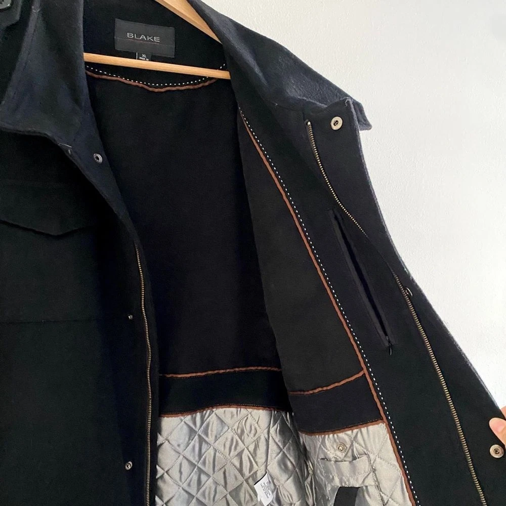 BLAKE Wool Jacket Black Mens Size XL Zip up & Snap Closure Inside & outside pockets This coat is so thick & heavy perfect for winter snow Pre owned in excellent condition! Measurements in photos 80% Wool 20% Nylon Lining: 100% Polyester