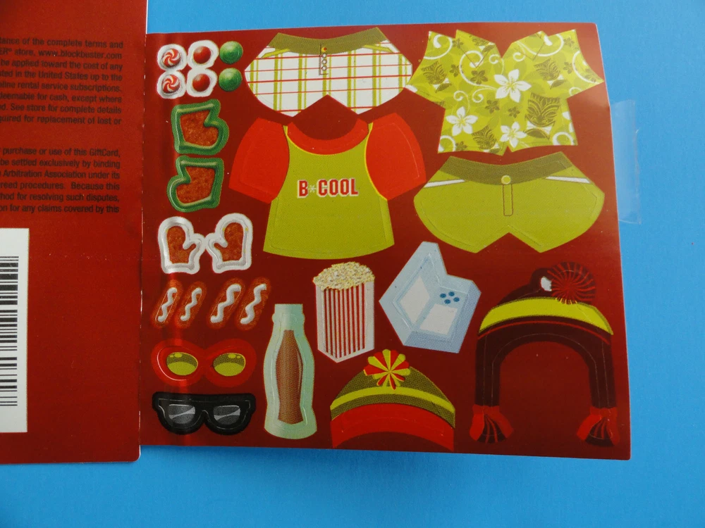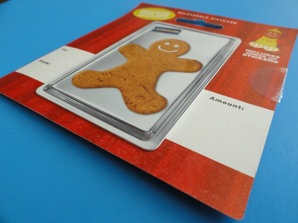 ****THERE IS NO VALUE ON THIS CARD AND IT CAN NOT BE LOADED - COLLECTIBLE ONLY**** THIS LISTING IS FOR A BRAND NEW, NEVER USED, ORIGINAL BLOCKBUSTER VIDEO GIFT CARD FROM FROM CHRISTMAS OF 2008! THIS VINTAGE CARD IS STILL ATTACHED TO THE ORIGINAL BACKER CARD, AND COMES COMPLETE WITH SELED STICKERS TO DECORATE THE GINGERBREAD MAN!! THIS IS A VERY RARE, HARD TO FIND ITEM AS BLOCKBUSTER IS GONE, WOULD MAKE A GREAT CHRISTMAS GIFT. IF YOU SEE MULTIPLE CARDS YOU WOULD LIKE, I WILL COMBINE SHIPPING FOR SEVERAL!! IF INTERESTED IN MORE THAN ON CARD, PLEASE MESSAGE ME BEFORE YOU PAY SO I CAN CALCULATE A COMBINED SHIPPING COST FOR ALL YOU AR PURHCASING. CARD(S) WILL BE SHIPPED TO YOU VERY CAREFULLY PACKED WITH CARDBOARD, TRACKING WILL BE PROVIDED AS I USE EBAY SHIPPING. (SHIPPING RATE IS FOR U.S. BUYERS ONLY, IF YOU REQUIRE INTERNATIONAL SHIPPING PLEASE MESSAGE ME FOR A RATE TO YOU LOCATION) PLEASE BE SURE TO CHECK OUT MY EBAY STORE AS I HAVE TONS OF GIFT CARDS AND WILL BE ADDING LOTS MORE!! THANKS FOR LOOKING!! INVENTORY #76