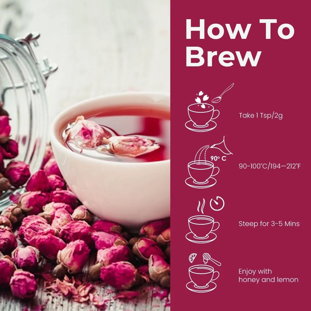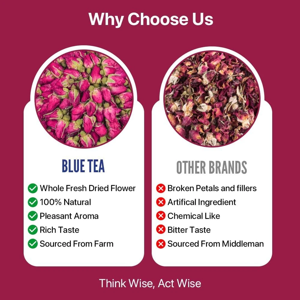 BLUE TEA - Rose Buds Herbal Tea - 1.06 Ounce | Grade A | DETOX TEA | Caffeine Free Herbal Tea - Vegan - GMO-Free - Food Grade Pet Jar | VITAMIN-C RICH: Our Rose Buds Tea is packed with Vitamin C, boosting your immune system and promoting overall health. BEAUTIFUL HAIR & SKIN: The natural properties of our Rose Buds Tea help nourish your hair and skin, promoting a healthy and radiant appearance. ALL NATURAL: Enjoy our herbal tea made solely from hand picked flowers, directly from the farm. No preservatives or artificial colors—just pure, natural goodness in every sip. CAFFEINE FREE: Enjoy the soothing and beneficial properties of our Rose buds Tea without the caffeine, making it suitable for any time of day. FARM FRESH: Our tea are carefully sourced from premium herbal ingredients and flowers from the farms, ensuring the highest quality and purity in every cup. Experience the essence of nature with each sip, directly from the source to your cup. EASY BREWING: Brewing your perfect cup is simple. Just steep 1-2 teaspoons of loose tea in hot water for 3-4 minutes. Adjust the steeping time to your preference for strength and flavor. UPLIFTING FARMERS: At Blue Tea India, we are dedicated to improving farmers' lives by boosting their income from $75 to $300 per month. Our efforts aim to positively impact 1,000 families by March 31, 2025. By choosing our tea, you support this mission and contribute to a brighter future for our hardworking farmers. Together, we are creating better livelihoods and empowering communities, one cup of tea at a time. Shipping We offer FREE shipping on all orders! We use a selection of shipping services such as UPS, FedEx, USPS etc. We only ship to the lower 48 states, no APO/FPO addresses or PO Boxes allowed. Local pickups and combined shipping options are not provided at this time. Return You can return a product for up to 30 days from the date you purchased it. Any product you return must be in the same condition you received it and in the original packaging. Please keep the receipt. Payment We accept payment by any of the following methods: PayPal Please pay as soon as possible after winning an auction, as that will allow us to post your item to you sooner! Feedback Customer satisfaction is very important to us. If you have any problem with your order, please contact us and we will do our best to make you satisfied. Contact Us If you have any queries, please contact us via ebay. We usually respond within 24 hours on weekdays. Please visit our eBay store to check out other items for sale! Thank you for shopping at our store.