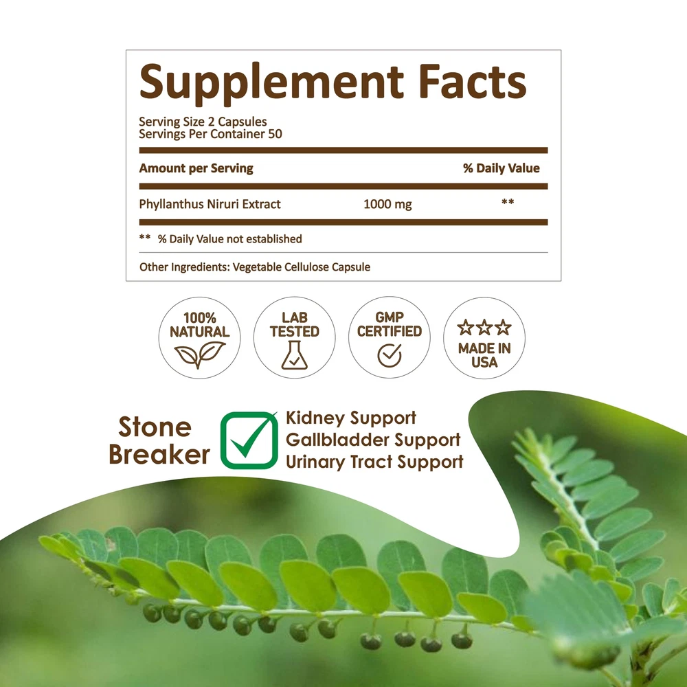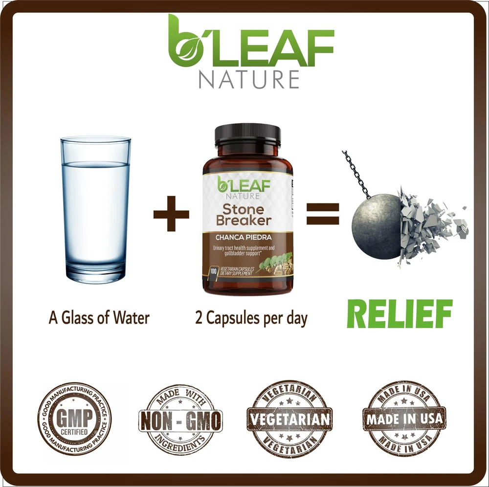 Chanca Piedra, Stone crusher, Stone breaker are the common names for a plant named Phyllantus Niruri. It is a small plant that grows on some parts of Asia, India, China and the Rainforest, taking the Chanca Piedra name from this last location. For thousands of years, indigenous populations have used the benefits of this plant. Insufficient fluid intake and diet choices contribute to the accumulation of calcium, oxalates, urate, cystine, xanthine and phosphates in your body that lead to the formation of kidney stones. And it is more important than ever to know all the options at your disposal to support your . Our Chanca Piedra are a natural for tract support, kidney and gallbladder . B’Leaf Nature potent Chanca Piedra Stone Breaker are made from the plant’s leaves into a 10:1 Extract. As always, B’Leaf Nature’s natural supplements are thoughtfully sourced to meet the standards our customers are used to in our products. Made in the USA in a cGMP compliant facility and lab tested by a third-party company. last thing, we stand behind our products, because we know what they are made from. POWERFUL TRACT AID: Our B’LEAF NATURE Stone Breaker Chanca Piedra harness the potency of Chanca Piedra, a natural herb renowned for its ability to inhibit the formation of minerals and salts in the kidneys and tract, promoting optimal and function. MULTIFACETED GOODNESS: Traditional uses of Chanca Piedra include gallbladder support, antioxidant properties, and lipid balance. Our provide a convenient way to integrate this into your daily routine, offering comprehensive support for better . PREMIUM QUALITY FORMULATION: Made from powdered Phyllanthus Niruri Extract, our Chanca Piedra deliver maximum nutritional value derived from this revered plant. Each 1000mg serving is carefully formulated to ensure efficacy and potency. MADE IN THE USA: Manufactured in a cGMP facility in the USA, our Stone Breaker undergo rigorous third-party lab testing to ensure purity and quality. They are Non-GMO, vegan, and free from soy, dairy, sugar, preservatives, and artificial colors or flavors. We utilize vegetarian for all dietary preferences. PURPOSE-DRIVEN COMMITMENT TO WELLNESS: With a dedication to high-quality natural ingredients, our mission is to improve your and wellness. Moreover, a portion of your purchase contributes to cancer research organizations, reflecting our commitment to supporting critical causes while promoting better for all.