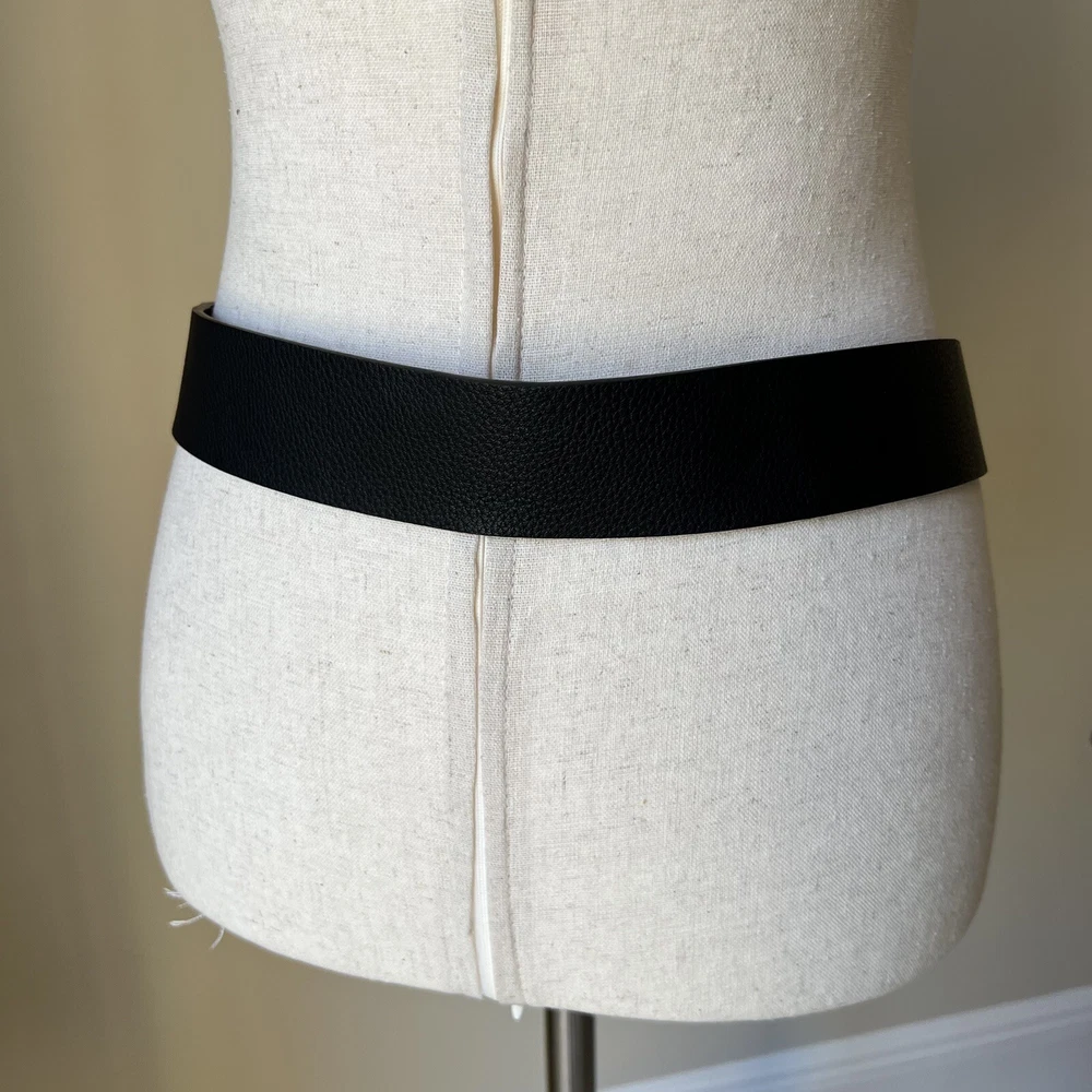 Add some bohemian flair to your wardrobe with this black pebbled tumble belt from B-Low The Belt. Made from high-quality faux leather, this wide belt features a double buckle and adjustable strap for a custom fit. The gold-plated hardware adds a touch of glamour, while the solid black color and lack of embellishments make it a versatile accessory for any outfit. Perfect for festivals, travel, or everyday wear, this fashion belt is a must-have for any stylish woman. The belt is available in size L/XL and is designed to fit most waist sizes. Whether you're dressing up or down, this B-Low The Belt will add a touch of American classic and bohemian style to your look.