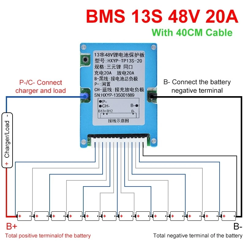 BMS 13S 48V 20A Battery Charging Board Li-ion Protection ACUS
