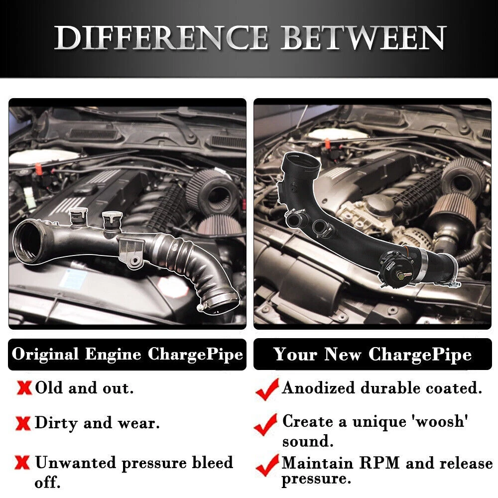 This charge pipe kit is a game-changer for BMW N54 engines—super sturdy aluminum construction, perfect fit, and the Tial-style BOV sounds amazing. No more worrying about cracked plastic pipes, and the turbo spools up quicker. Installation was straightforward, and the performance boost is noticeable. Great upgrade for anyone running more boost or just wanting reliability. Highly recommend!