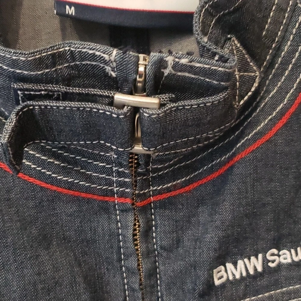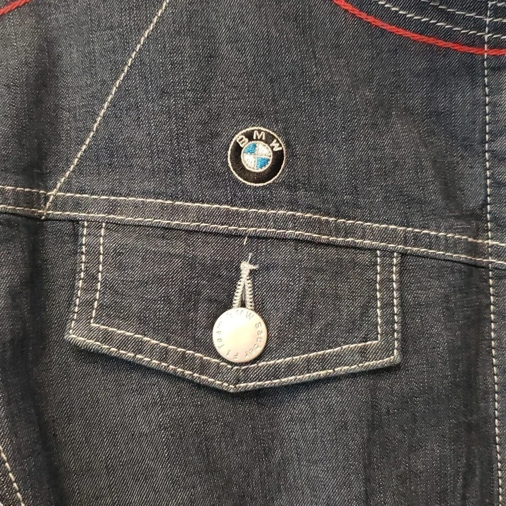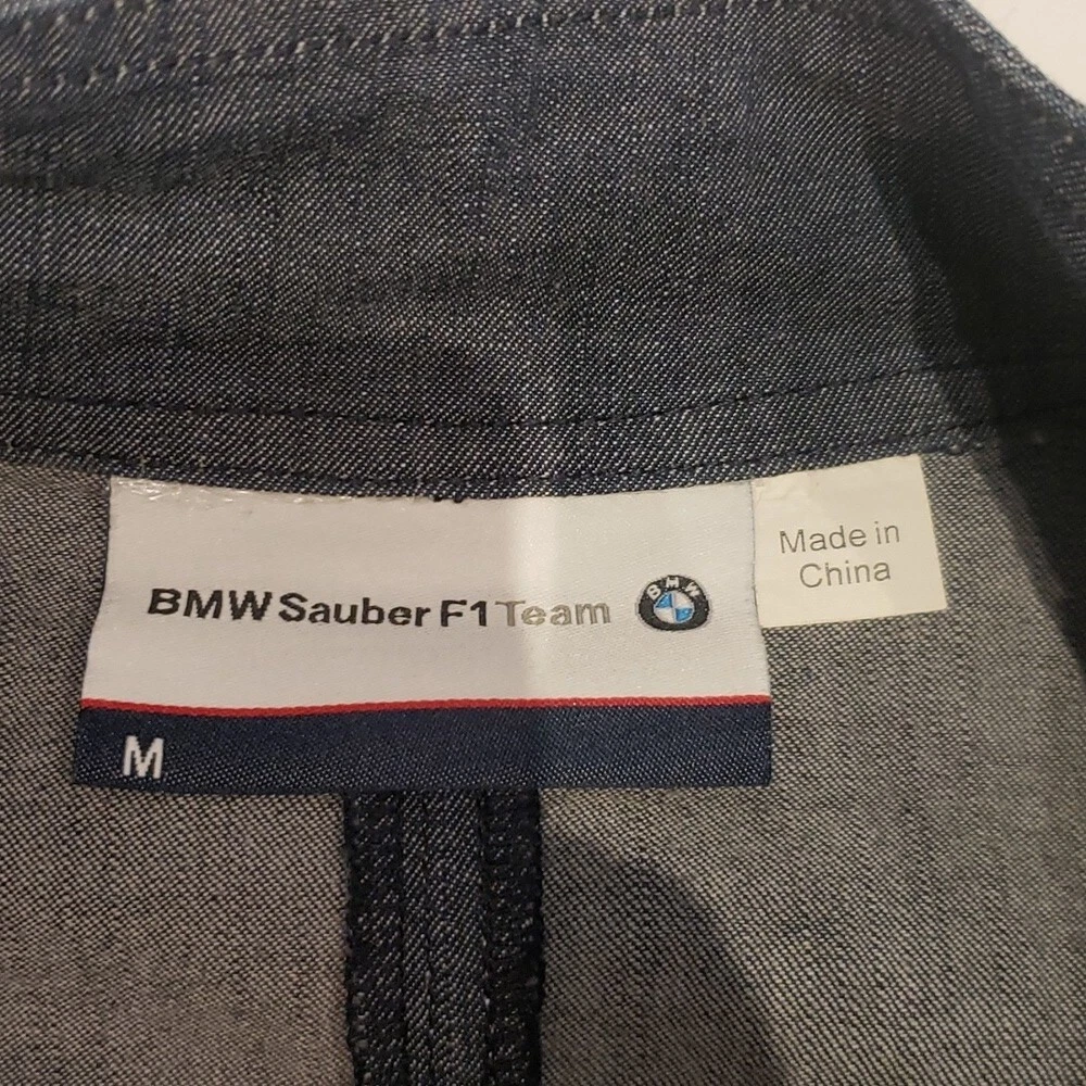#1212 BMW Sauber F1 Team Denim Jacket Women's Medium Light Blazer Zipper This lovely BMW ladies denim jacket has beautiful detail and is in very good condition. No tears, rips or stains. See photos for condition and measurements. Thanks for stopping by.