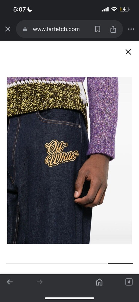 BNWT OFF-WHITE C/O VIRGIL ABLOH Flared Denim Jeans With Embroidered Logo. Condition is New with tags. Shipped with Flat Rate Freight.