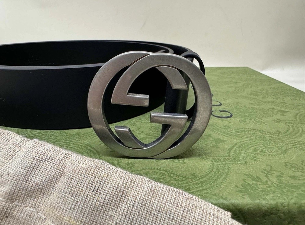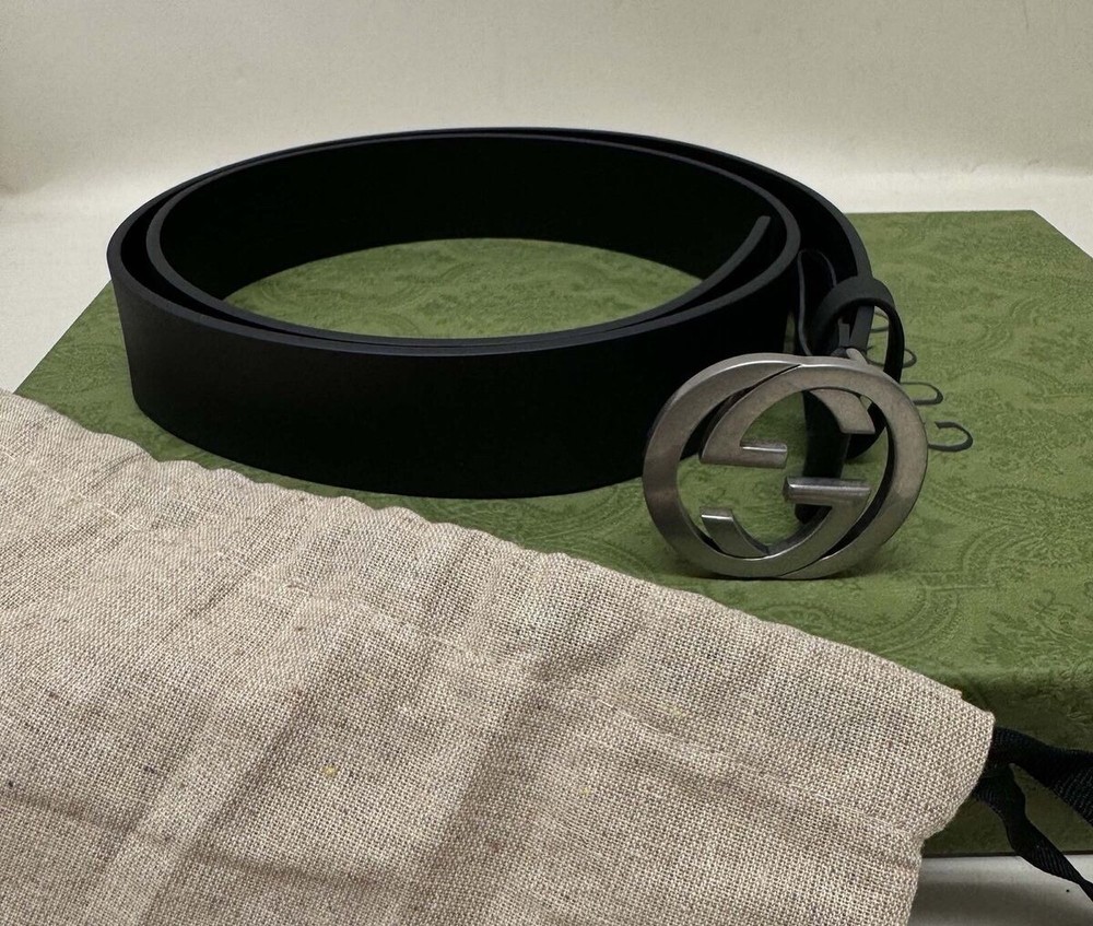 The product is a brand new Gucci Interlocking G belt in black and silver, made of leather in Italy. The belt features a solid pattern and is a size 38, suitable for regular wear. With the iconic Gucci logo and high-quality materials, this stylish accessory is sure to elevate any outfit and showcase luxury craftsmanship. Perfect for adding a touch of sophistication to any wardrobe.