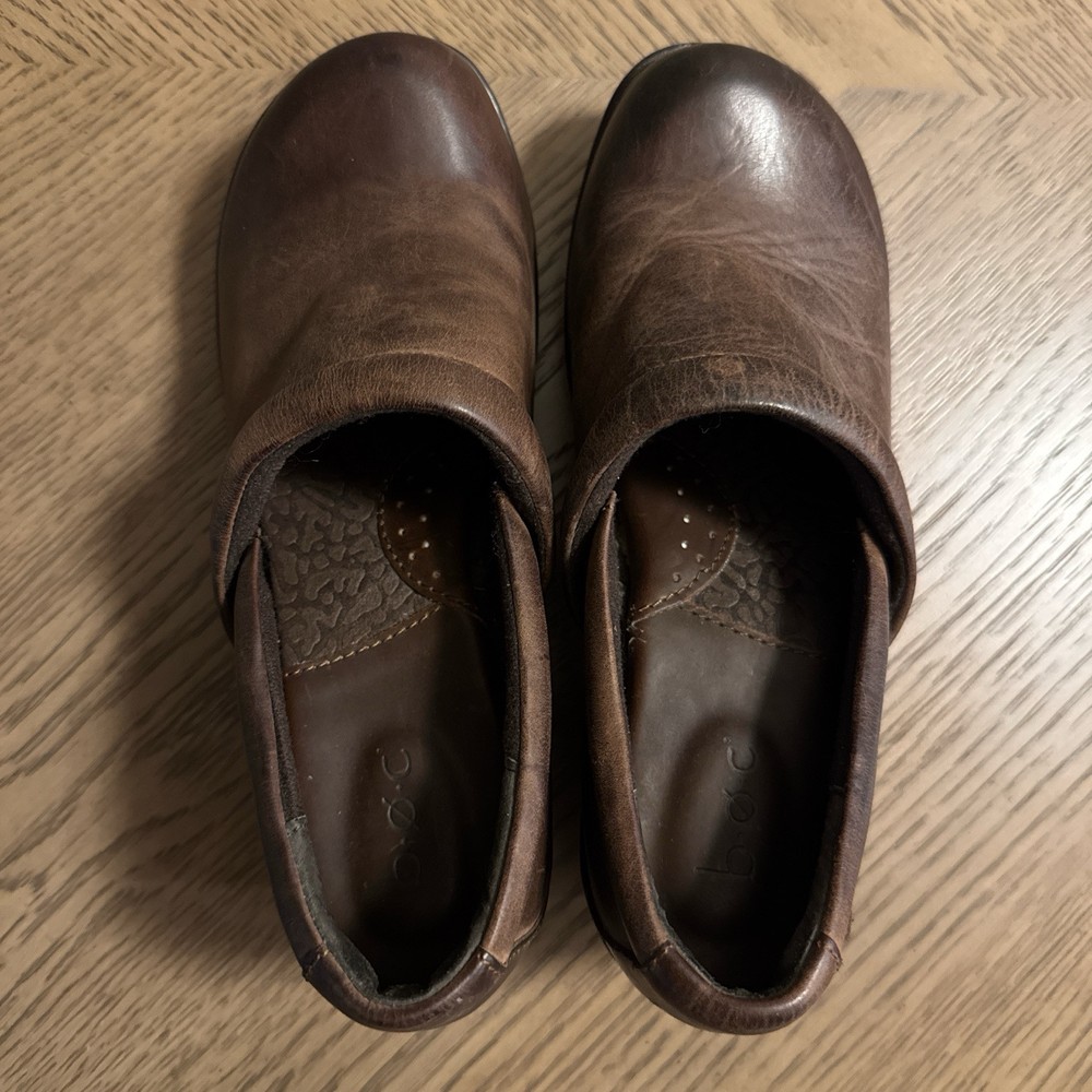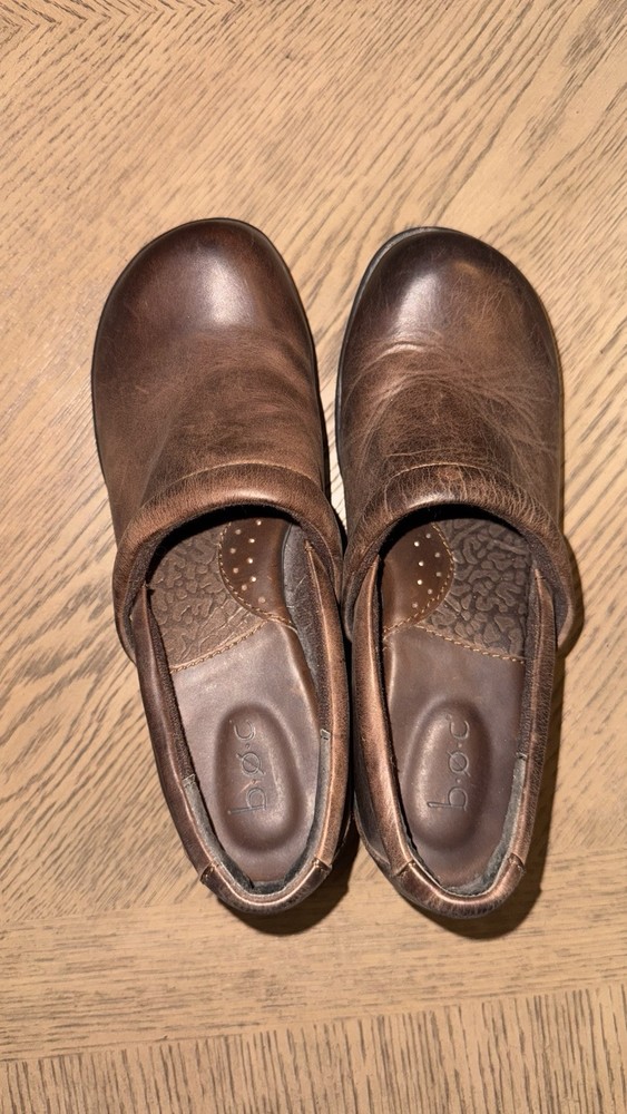These BOC Born Concept Nadiyya clogs are stylish slip-on shoes for women with a round toe and a comfortable mid-height wedge heel. Made of brown leather with a solid pattern, these casual clogs feature a breathable faux leather lining and insole, making them ideal for all seasons. The Børn brand logo accents add a touch of modern style to the classic design. Perfect for walking and everyday wear, these clogs are a versatile addition to any wardrobe.