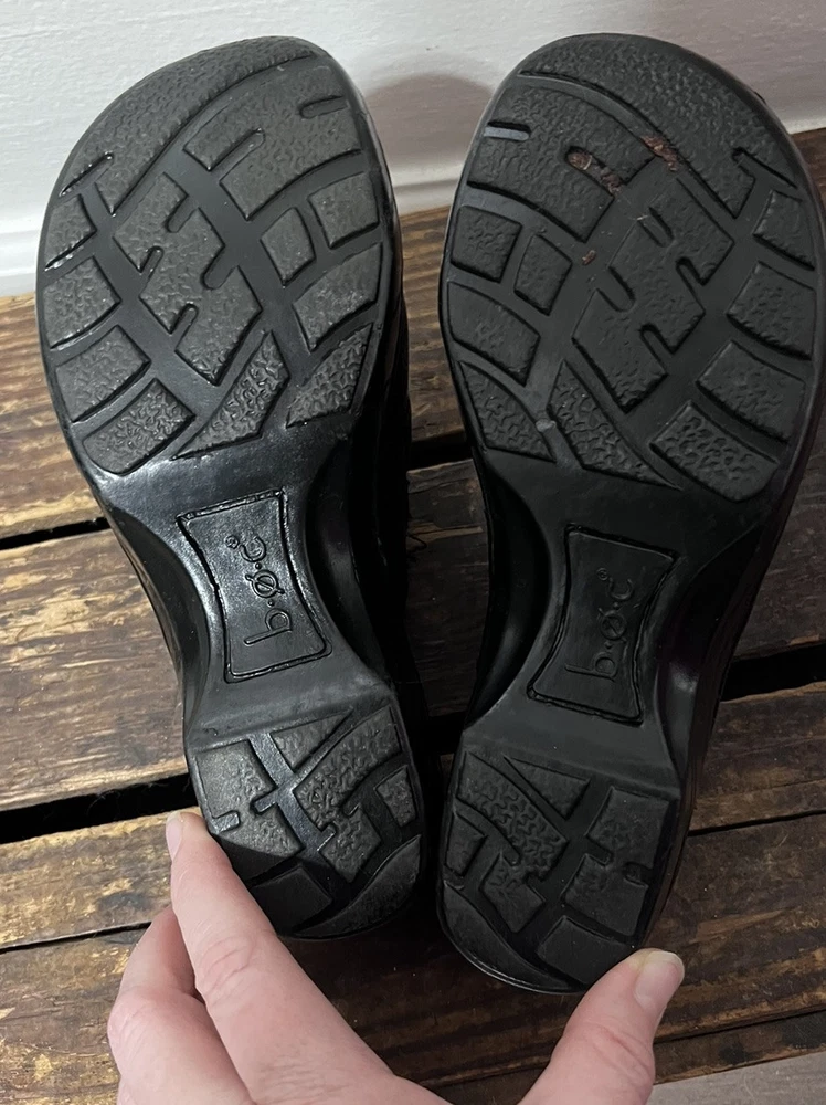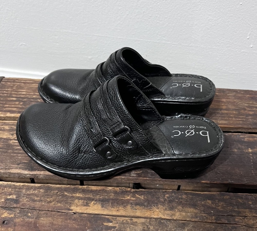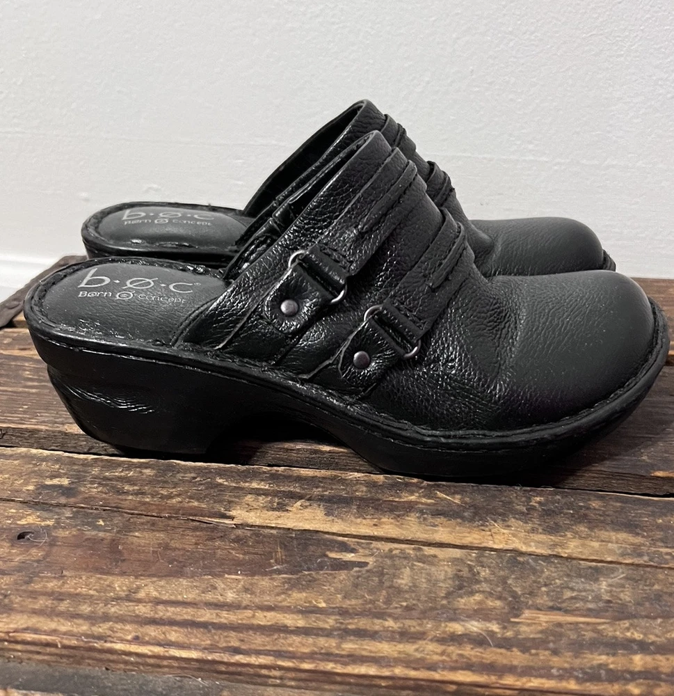 b.o.c. BORN Solid Black Leather Clogs Mules Shoes Womens Sz 6 M Looks like they were worn maybe once! Checkout the pictures!