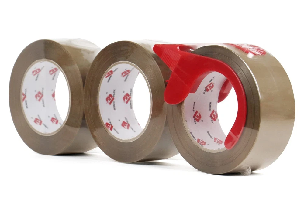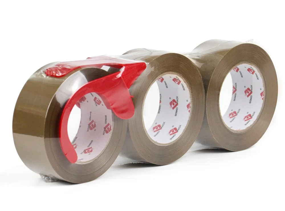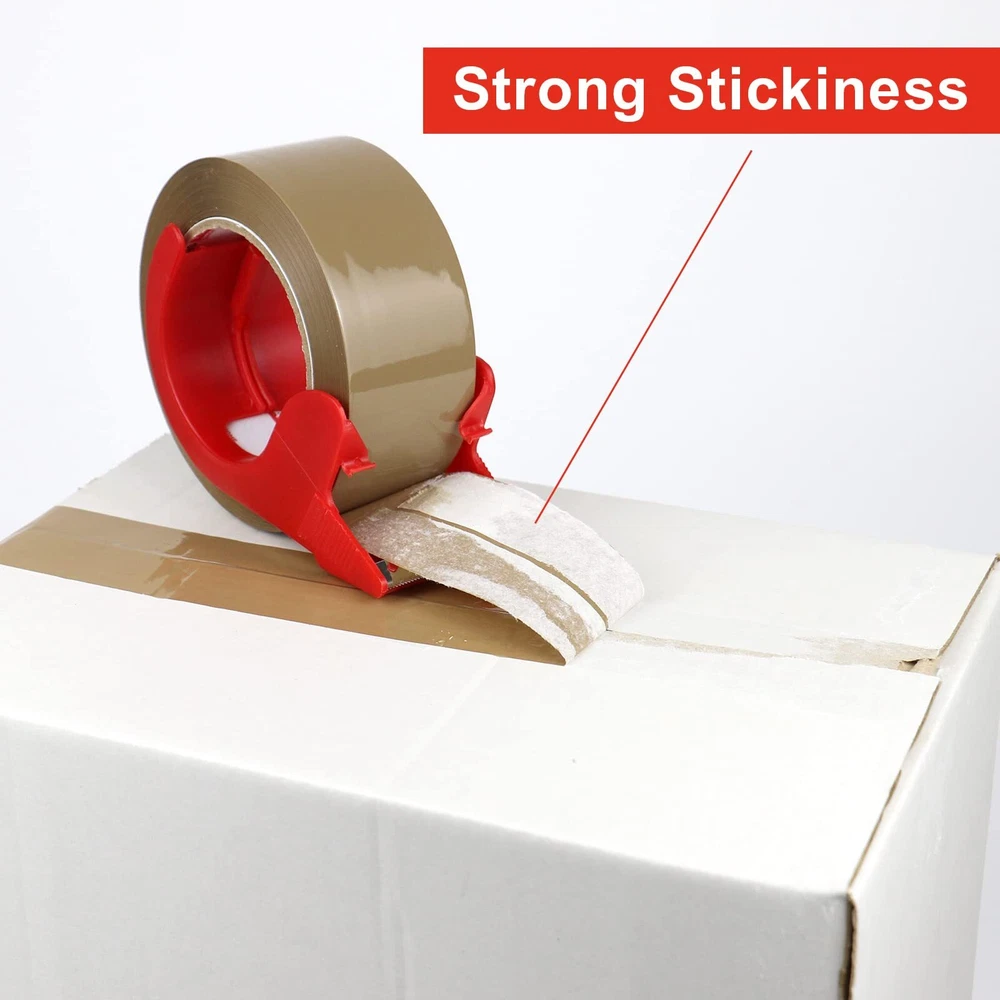 PREMIUM ADHESIVE: 3 Roll of 110 Yards, 2.6 mil thick of high performance brown color packaging tape with a small easy use dispenser for free. High adhesion and holding power resists popping for a tight seal throughout the supply chain. Suitable for home, commercial or industrial use in any climate. This storage and shipping box tape can firmly stick onto any surface UNIVERSAL STANDARD SIZES: 2 inch wide; 110 yards length; 2.6 mil thickness. The diameter of core is 3 inch and perfectly fit standard 2inch hand-held dispenser. It will help your warehouse manage the sealing process quick and efficient. Adhesive sticks to smooth and textured surfaces especially on cardboard and carton materials EASY TO USE: Our 2.6 mil thick brown tape is very good in thickness and toughness, will not tear or split easily. Provides excellent holding power for heavy-duty packaging and shipping. Strong seal on all box types, including harder-to-stick-to 100% recycled boxes. It' s easy to open, unwind and suitable for all standard tape dispensers and tape guns EXTREMELY DURABLE: Our brown packing tape offers excellent holding power for packaging and shipping, easy to use shipping tape that will not split or rip during application. High edge tear and split resistance make it ideal for general industrial packaging applications and boxes weighing up to 80 pounds MULTIPLE USE: Brown or Tan color Premium tape is a carton sealing tape that can be used for home removals, shipping and mailing, for storing and organizing household items, but also for anything that one expects from a household multipurpose tape. This moving and packing tape will always come in handy
