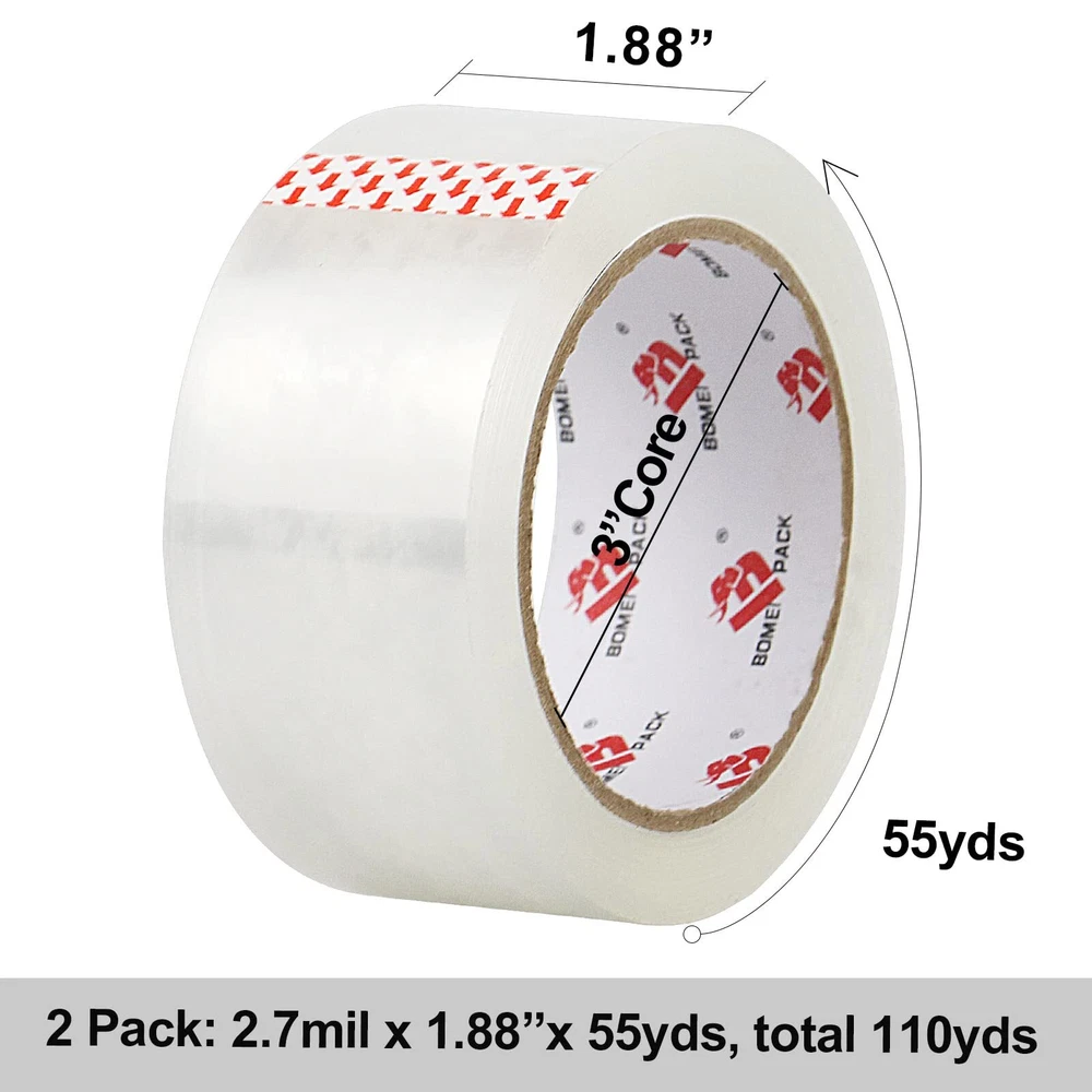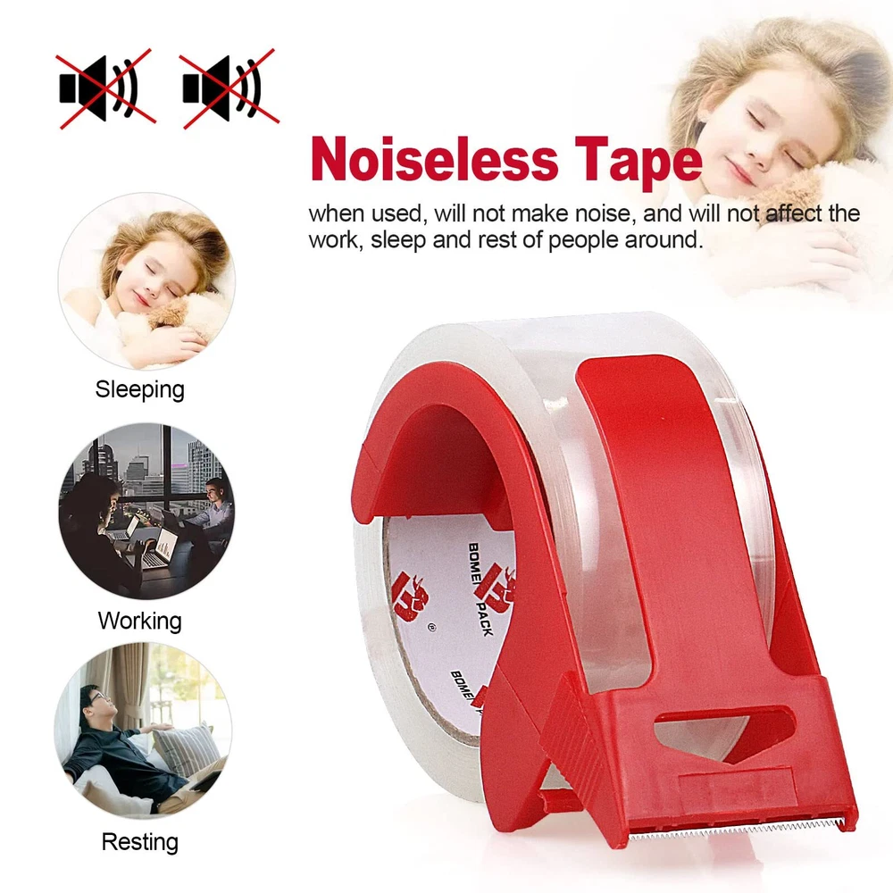 No Noise:Our ultra-quiet, ultra-clear packing tape refills ideal for packaging at night, at office or any other quiet place.It doesn't have any noisy and will not disturb others when packing Strong Adhesive:2.7 mil thick no noise tape is good in thickness and toughness ,clear silent tape provide excellent holding power for normal, economy, or heavy-duty packaging and shipping supplies Multiple Use - Apply at the depot, home and office use. The quiet tape could be used for home removals,shipping, packaging, box and carton sealing, organizing household items.It also good for removing dust and hair Easy to Use:Heavy duty shipping tape with dispenser and refills is easy to pull, will not split out rip during application and will not peal off,1.88inch width is easy to worth with using any standard tape dispensers and tape guns Tape Dispenser:Transparent packaging tape refill rolls with free dispenser, can help us work better and more convenient